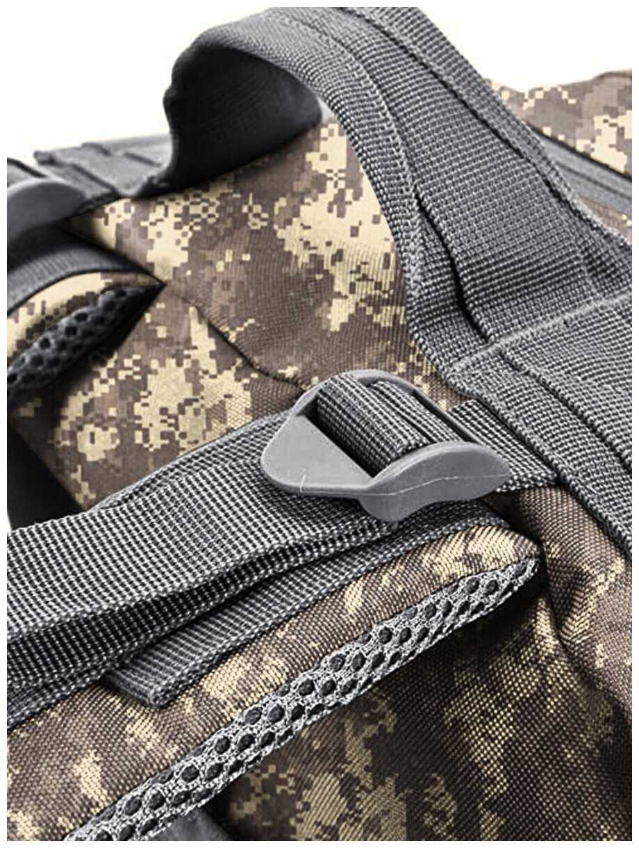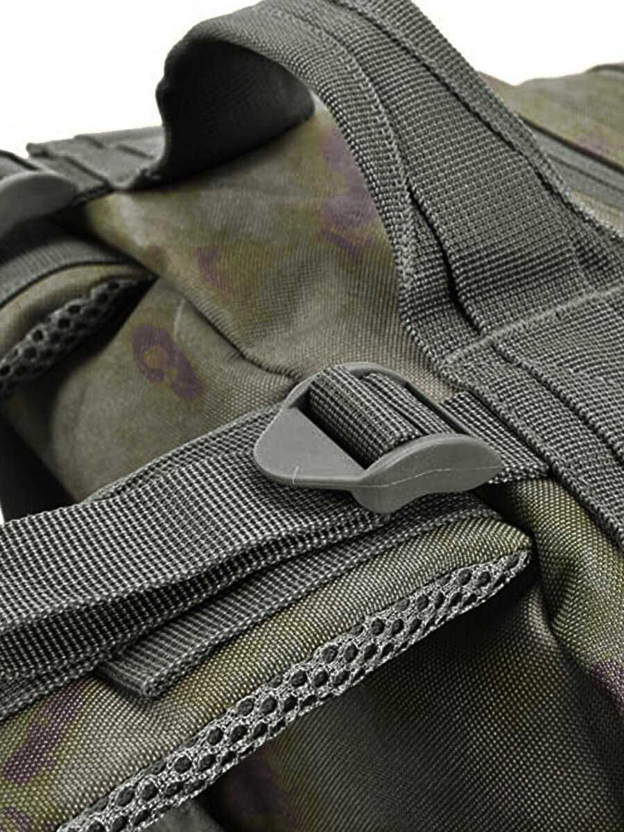 - MOLLE-система на внешней поверхности дает возможность крепить дополнительное снаряжение карабинами, расширяя функционал.