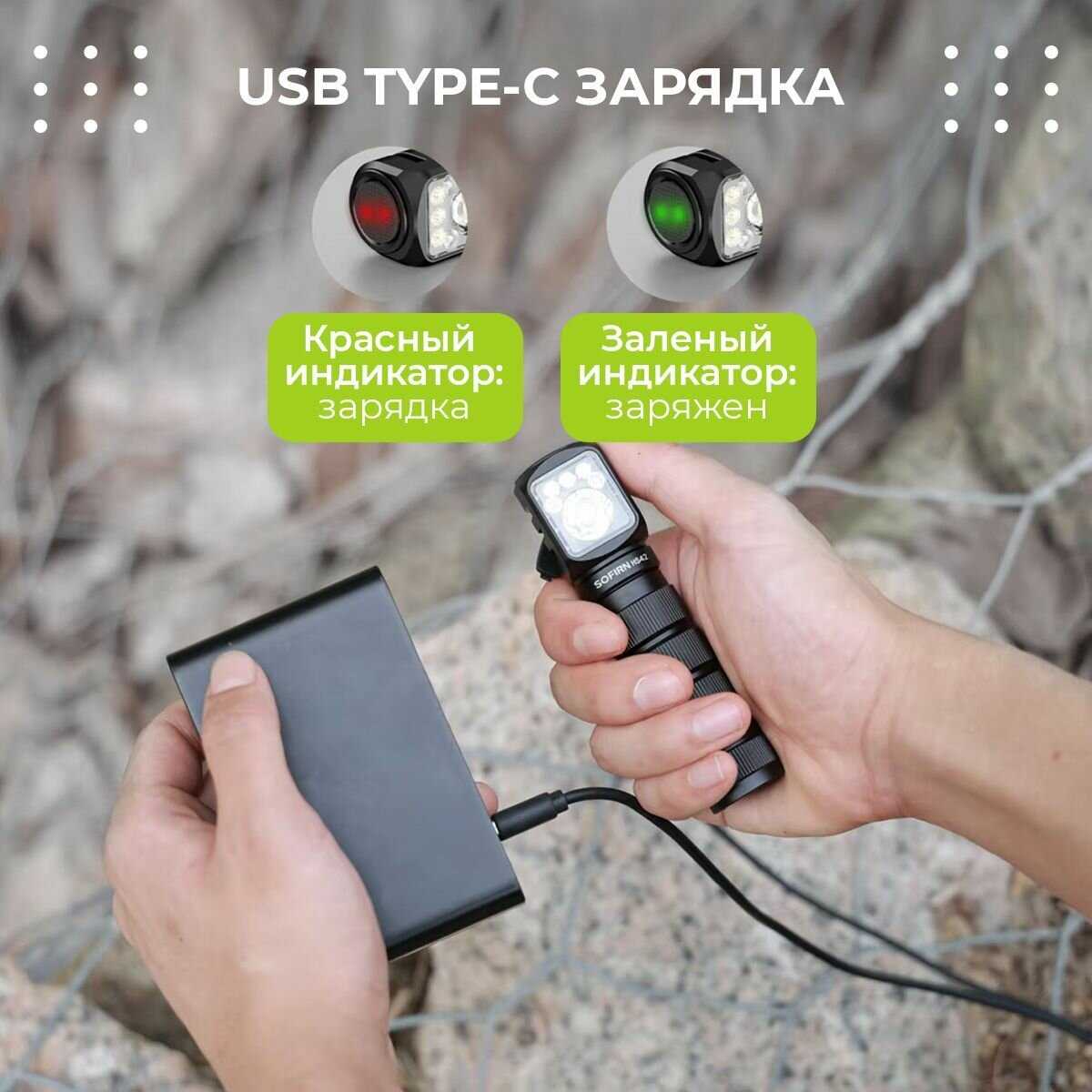 | Особенности : | USB-зарядка, батарейки, влагозащита, индикация заряда, кабель USB, красный свет, ударопрочный корпус |
