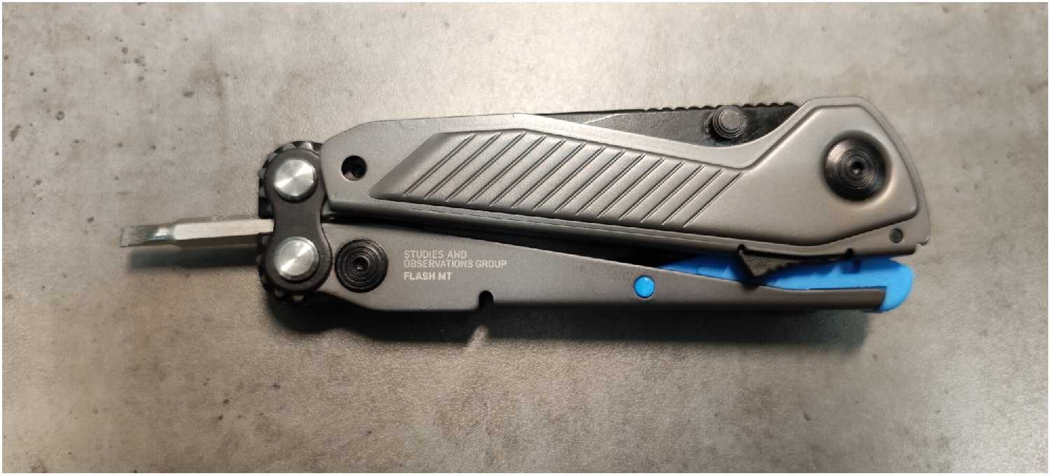 | Инструменты (функции) : | кусачки, отвертка, открывалка для бутылок, плоскогубцы |