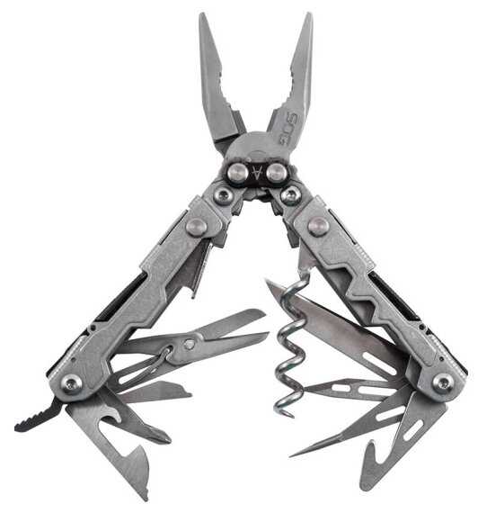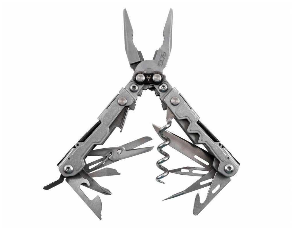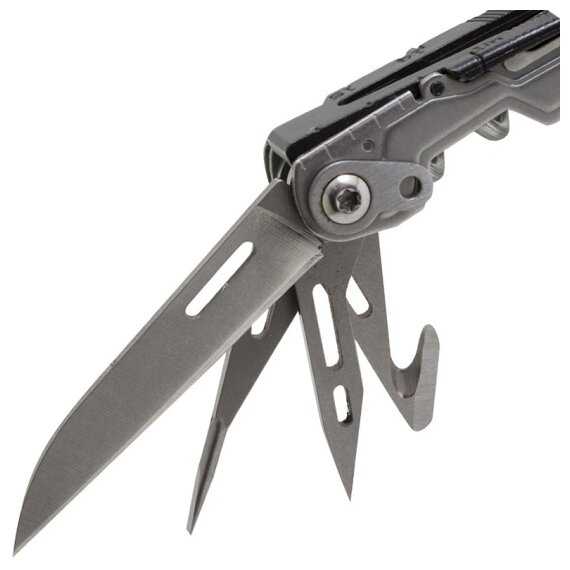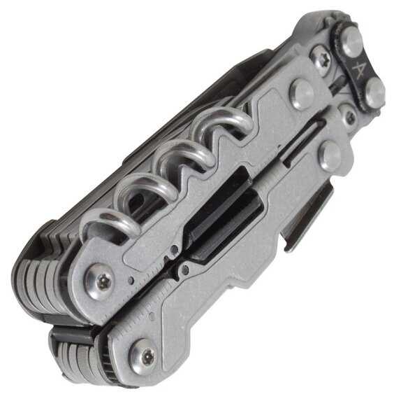 | Инструменты (функции) : | винтовая отвёртка, клипса, консервный нож, кусачки, линейка, напильник, нож, ножницы, отвертка, открывалка для бутылок, пассатижи, пилка для ногтей, плоскогубцы, шило / кернер, штопор |