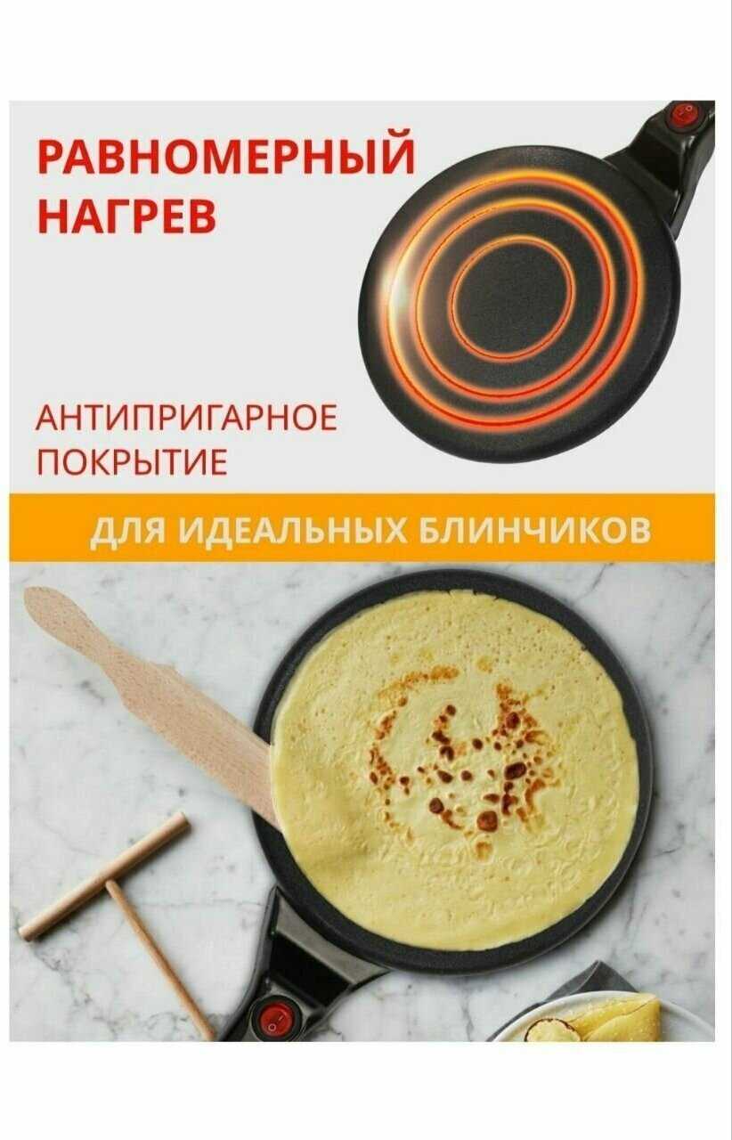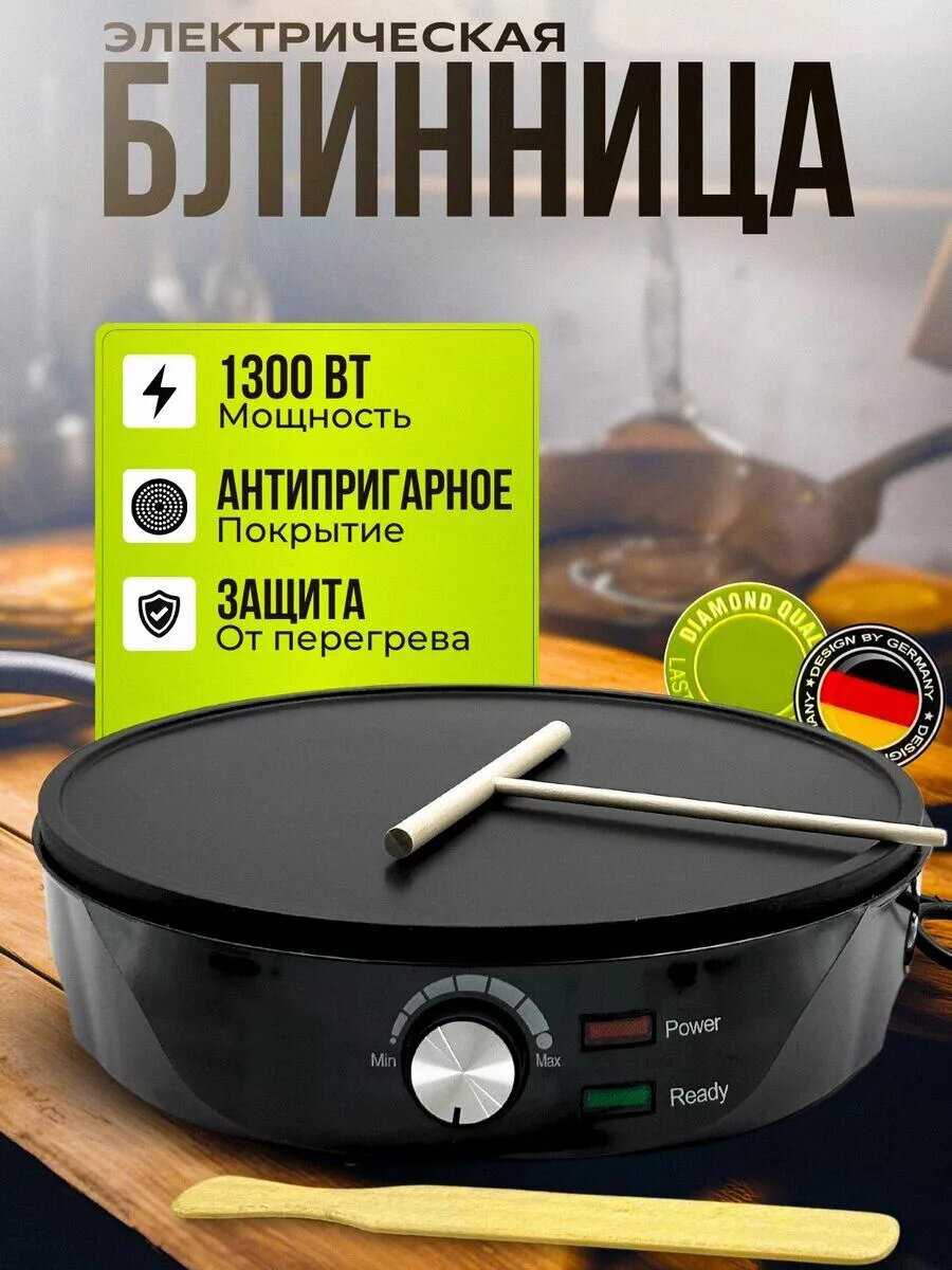 - + Быстро выпекает блины, легко очищается.