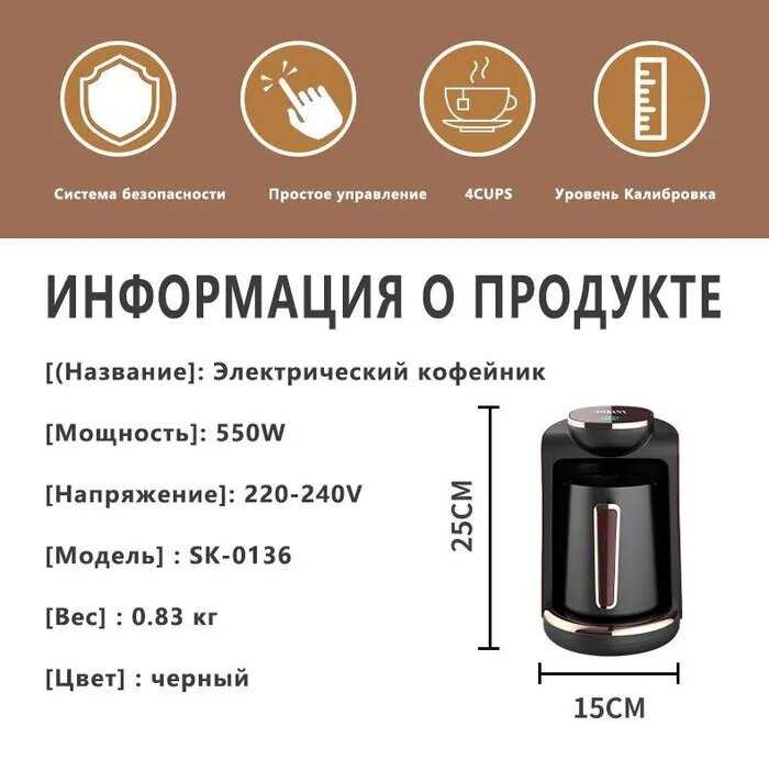 Характеристи Sokany Кофеварка (Электрическая кофеварка-турка)