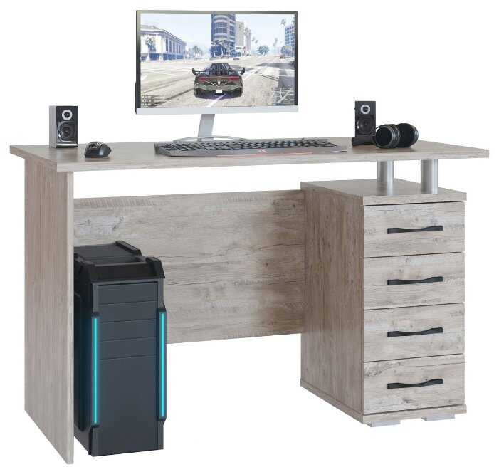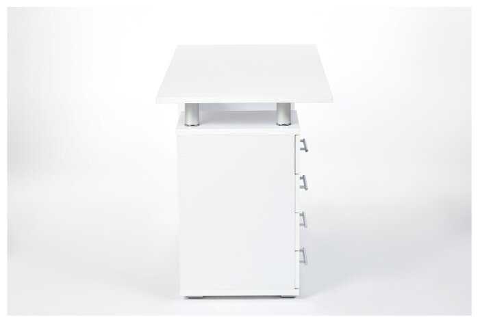 Обычный рабочий стол. Ящиков много, хоть они и небольшой вместимости. Не очень аккуратно сделан, местами остались следы от столярного клея. Учитывайте, что подавляющее число лазерных мышей на этом столе не будут работать - докупайте сразу коврик для мыши.
