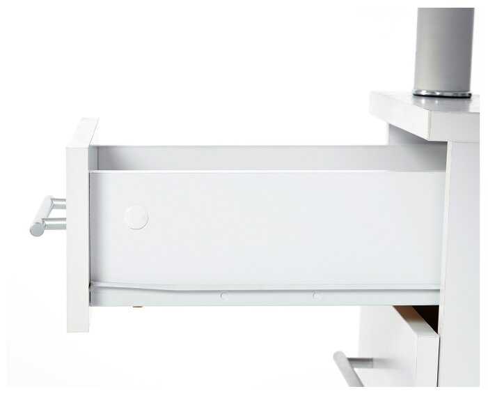 - - Придирки: Перемудрили конструкторы с креплением столешницы к тумбе через опоры дополнительными болтами, головки которых нехило торчат в первый выдвижной ящик. Нет доступа к регулировке по высоте у ножек тумбочки.