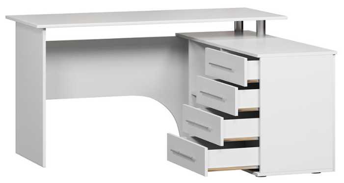 - 4 неглубоких ящика (глубина 15 см) с металлическими ручками удобны для хранения документов и мелочей — содержимое видно сразу.