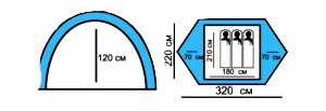 Размер спального места - на взрослого среднего роста или чуть выше. Высокий человек может подпереть головой и ногами стенки палатки.