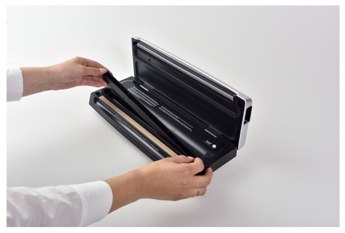 - + Превосходный вакуумный упаковщик. Огромный плюс за вертикальность, занимает мало места, удобно вакуумировать продукты. Понятное управление.
