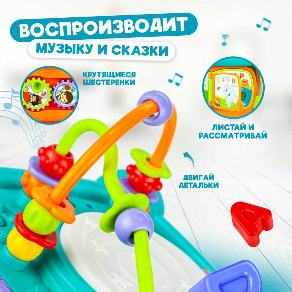 - + Ребенок в восторге, на каждой стороне что-то интересное, все крутится, тарахтит, яркое!