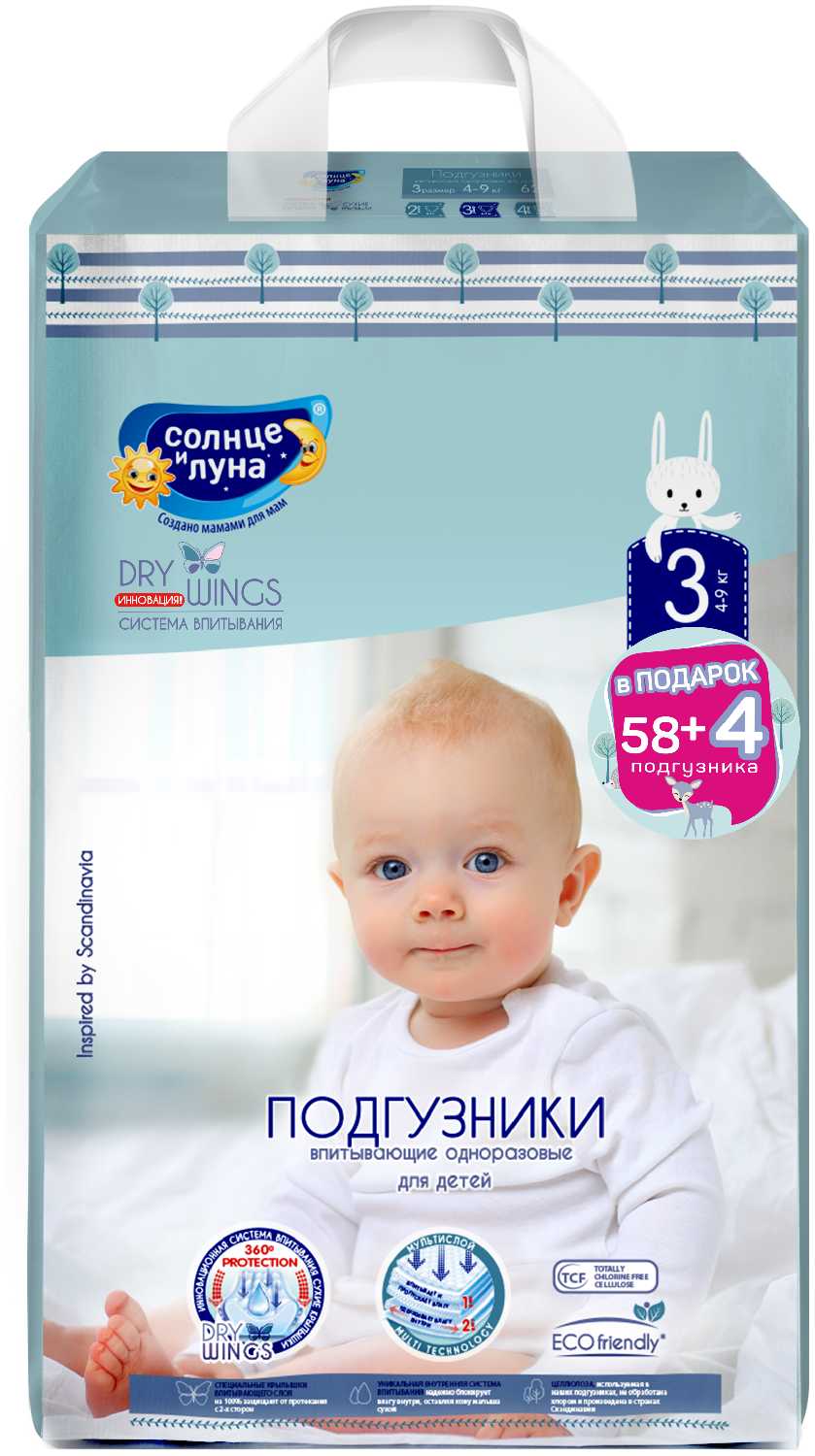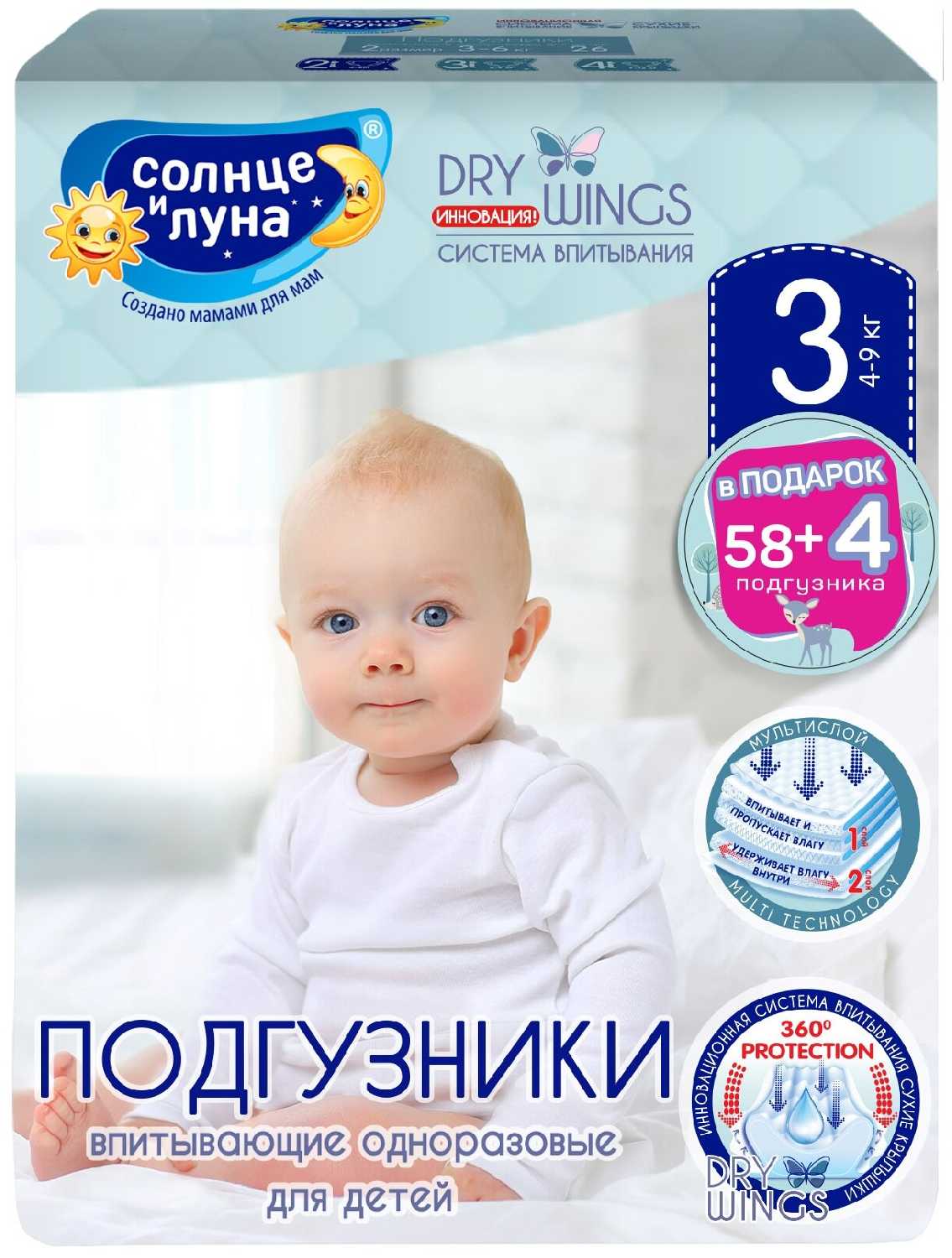 Солнце и Луна подгузники Dry Wings 3, 4-9 кг?