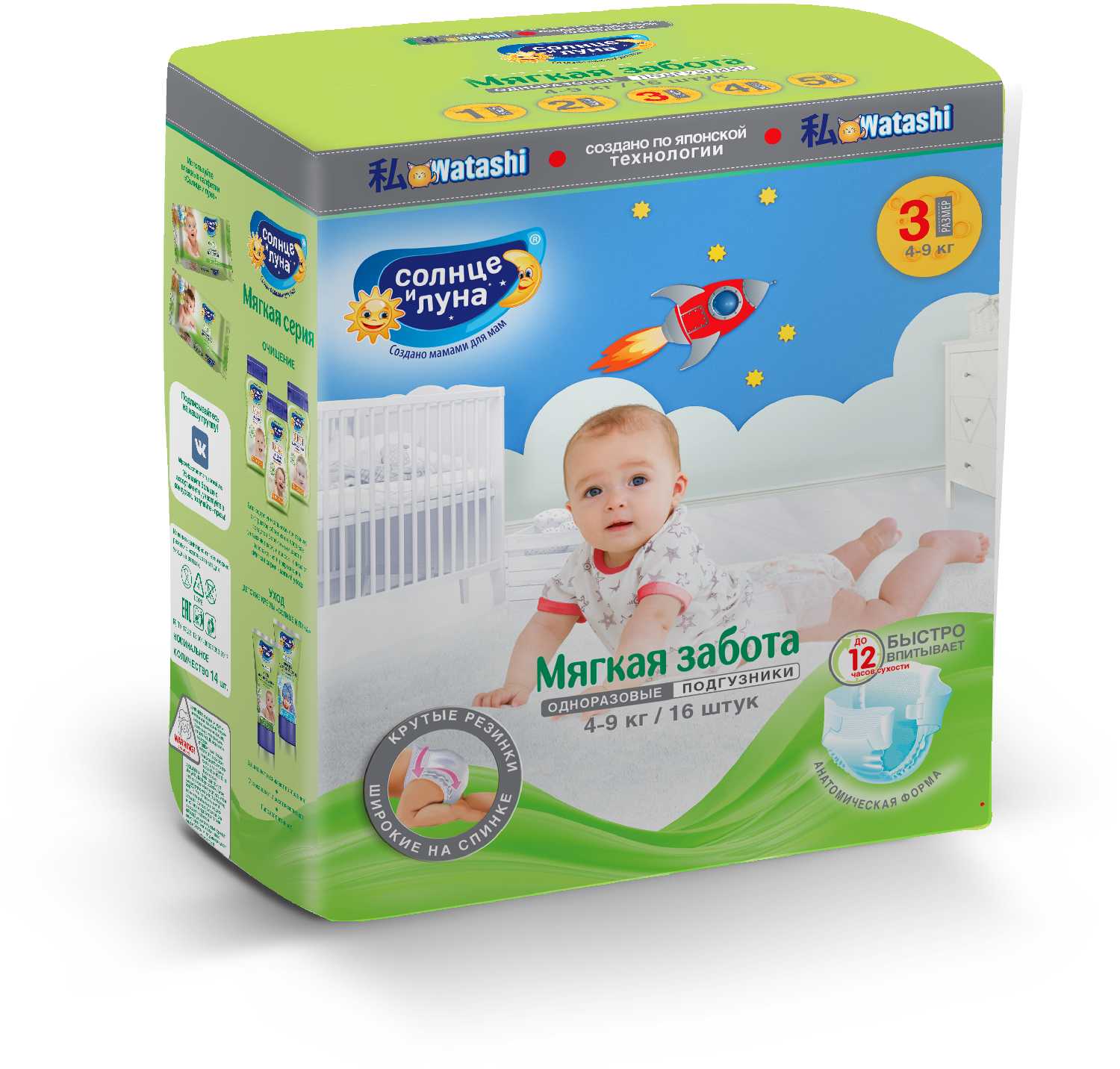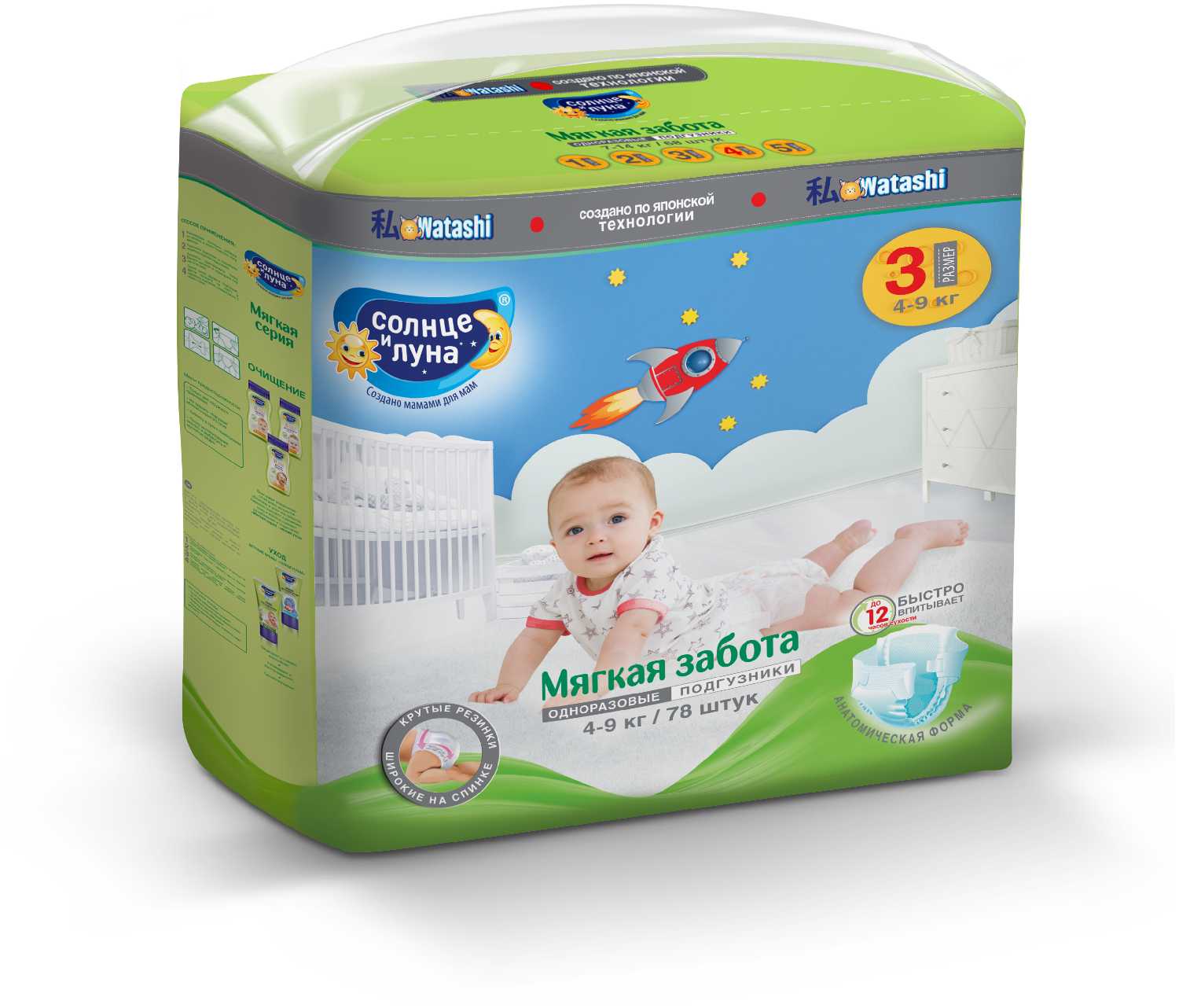 Солнце и Луна подгузники Мягкая забота 3, 4-9?