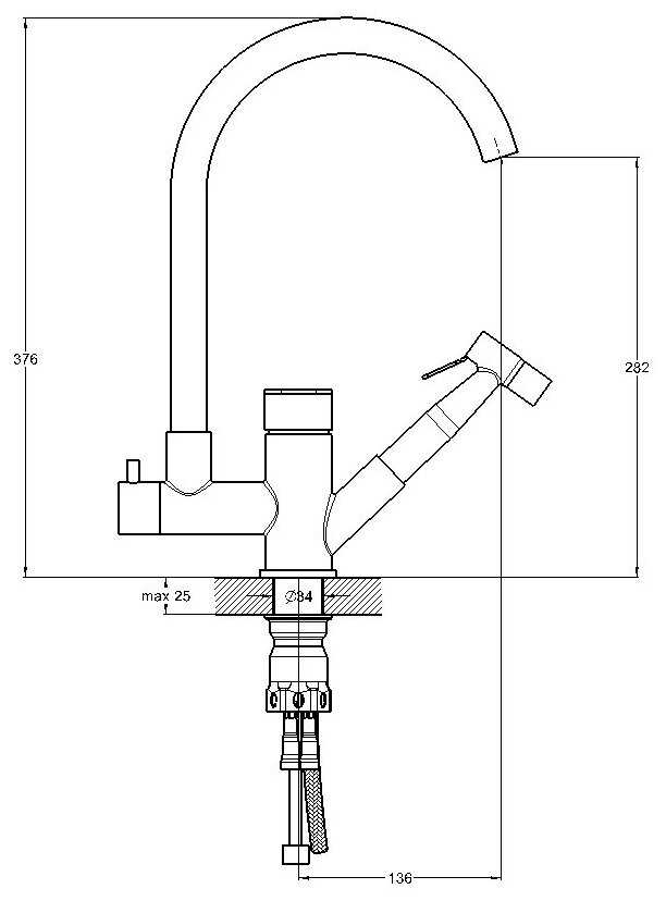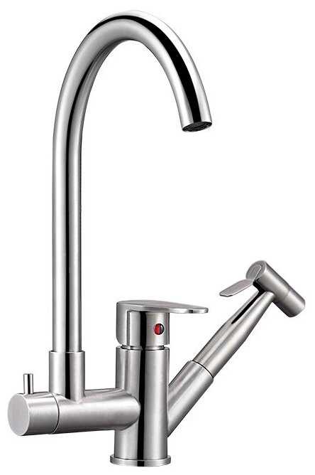 Смеситель мне очень понравился. В дополнение к обычному крану тут есть еще и лейка, как в душе, только маленькая. Обалденно удобная штука, например, помыть арбуз. Просто под краном не удобно, согласитесь это делать не совсем удобно, а с лейкой легко и просто. Здорово. Есть специальный переключатель для перевода потока воды с крана на лейку. Смеситель еще и красивый