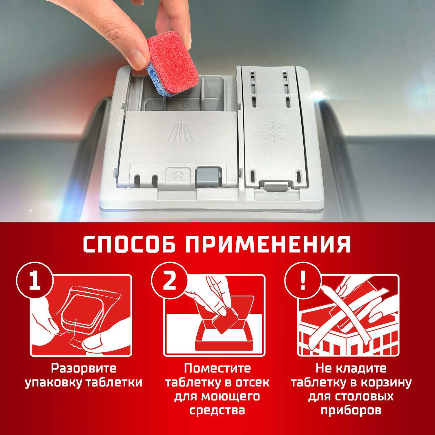 - + Отмывает посуду до блеска