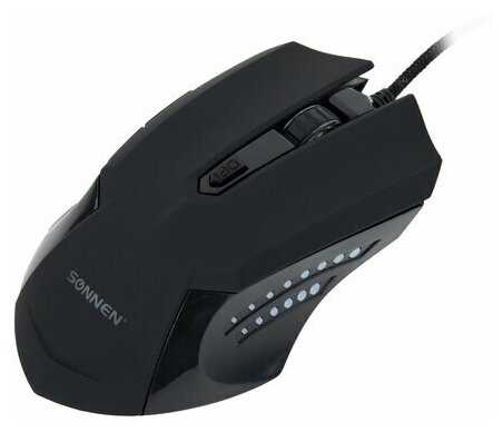 Отзывы о Мышь проводная игровая SONNEN I3, пластик, 6 кнопок, 800-3200 dpi, LED-подсветка, черная, 513523