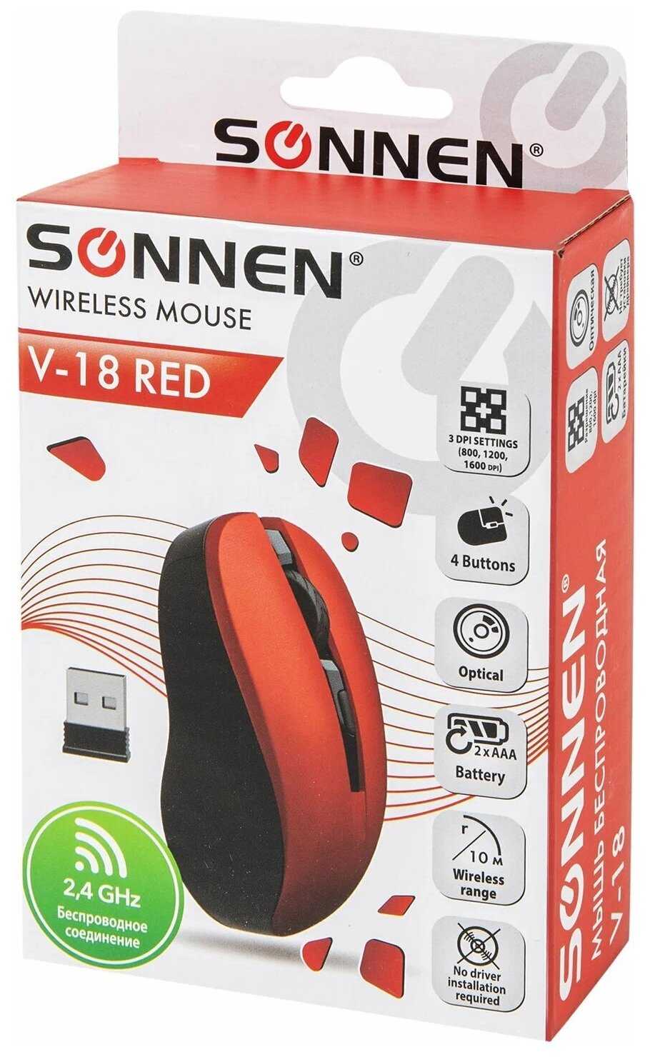 | Комплектация : | [Мышь беспроводная с бесшумным кликом SONNEN V18, USB, 800/1200/1600 dpi, 4 кнопки, красная, 513516] X 2 шт. |
