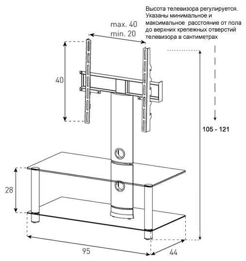 | Дополнительная информация : | встроенный кабель-канал угол поворота ±35° скрытые колесики, регулируемая высота телевизора |