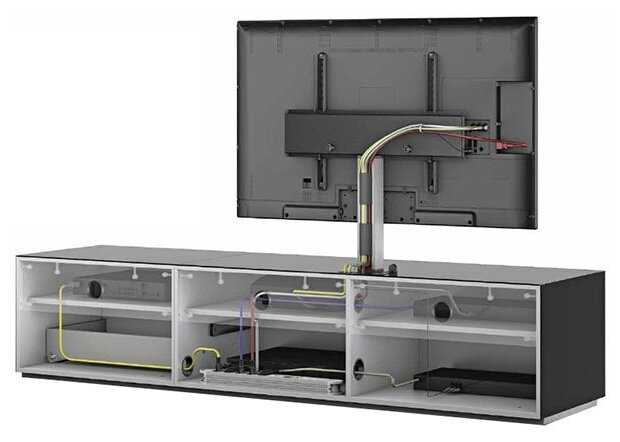 - + Красивая (минималистичная), надёжная, тяжёлая. Со сборкой справился сам, хоть и пришлось довольно много повозиться. Есть колёсики, можно двигать, плюс телевизор можно крутить на небольшой угол