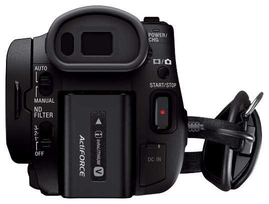 - Держит 1 час съёмки, умирает раньше 32 ГБ карты; нужен NP-FV100 (4+ часа, но перевешивает на штативе).