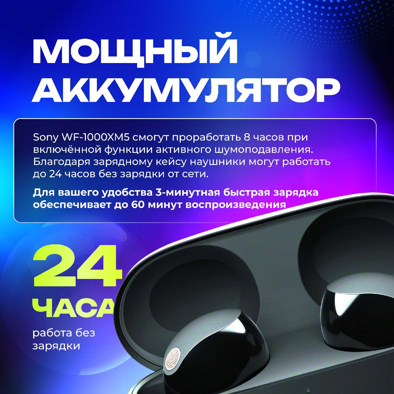 - До 8 часов работы с ANC и до 24 часов с кейсом (реальные тесты показывают 6-7 часов при средней громкости).