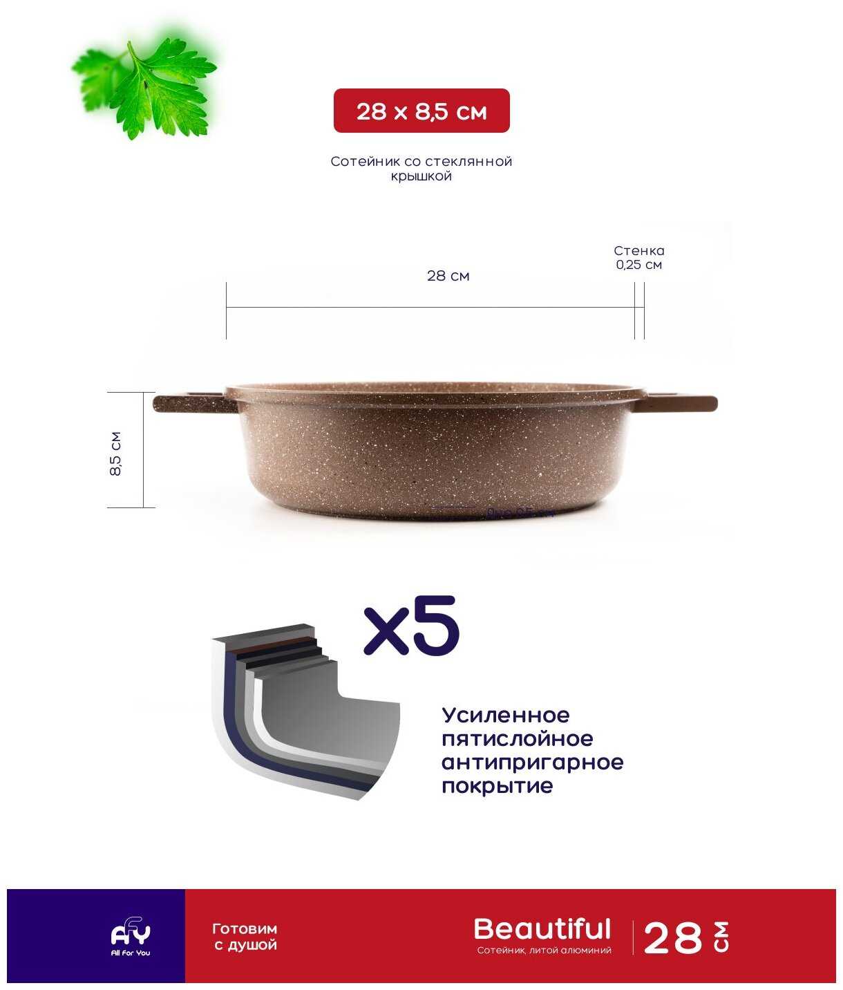 All For You серия Beautiful 28 см со стеклянной крышкой, антипригарное покрытие, индукция