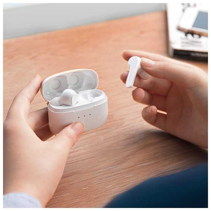 4. True wireless design. Лёгкие, маленький кейс. И не выпадают из ушей. - - 1. Не смог подружить с ноутбуком для звонков: подключается, но конфликтует с мышью и wifi. С телефона говорить можно без проблем, но по отзывам слышно шумнее, чем со встроенного микрофона.