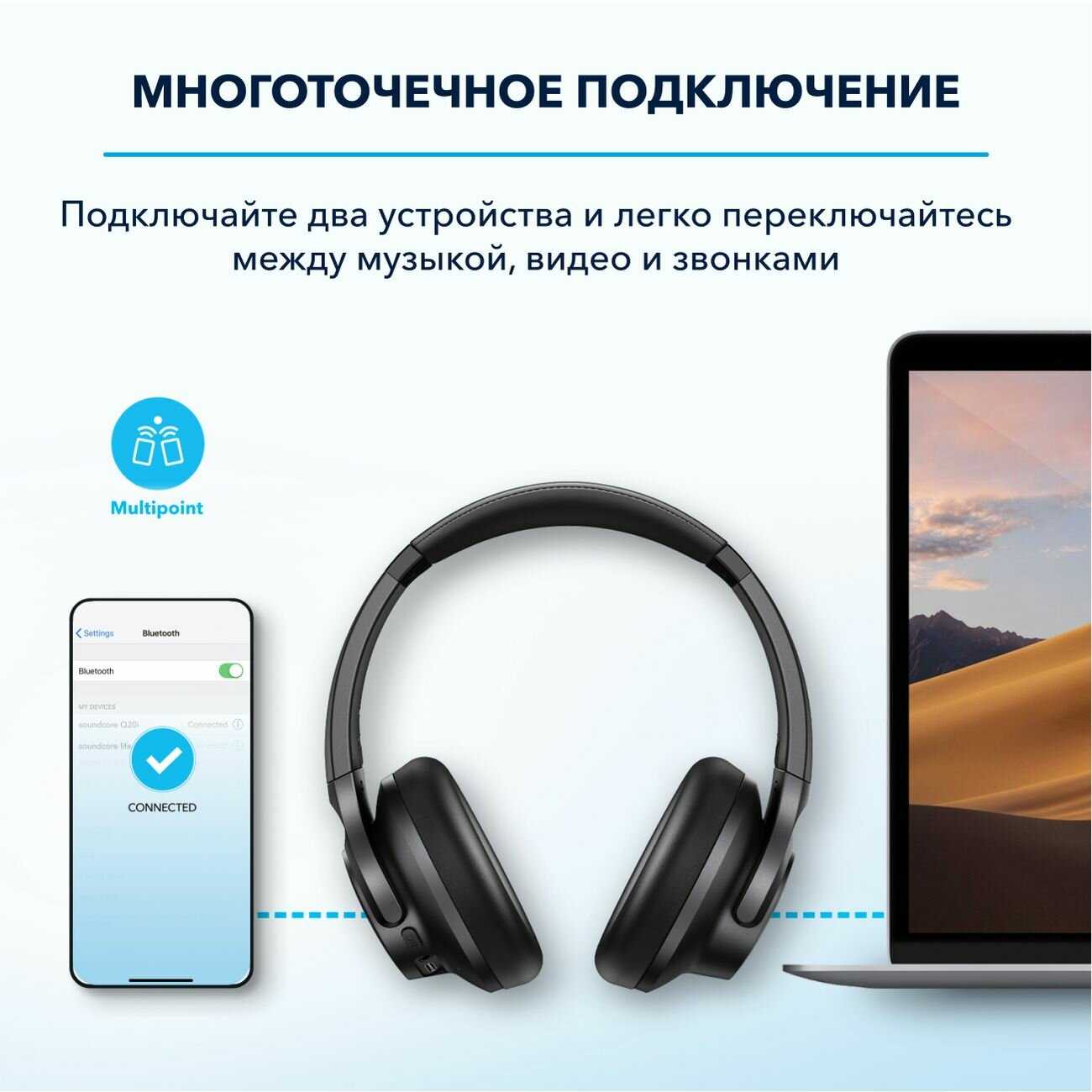 - Подключение к двум устройствам с мгновенным переключением упрощает использование между телефоном, планшетом и ноутбуком без разрывов.