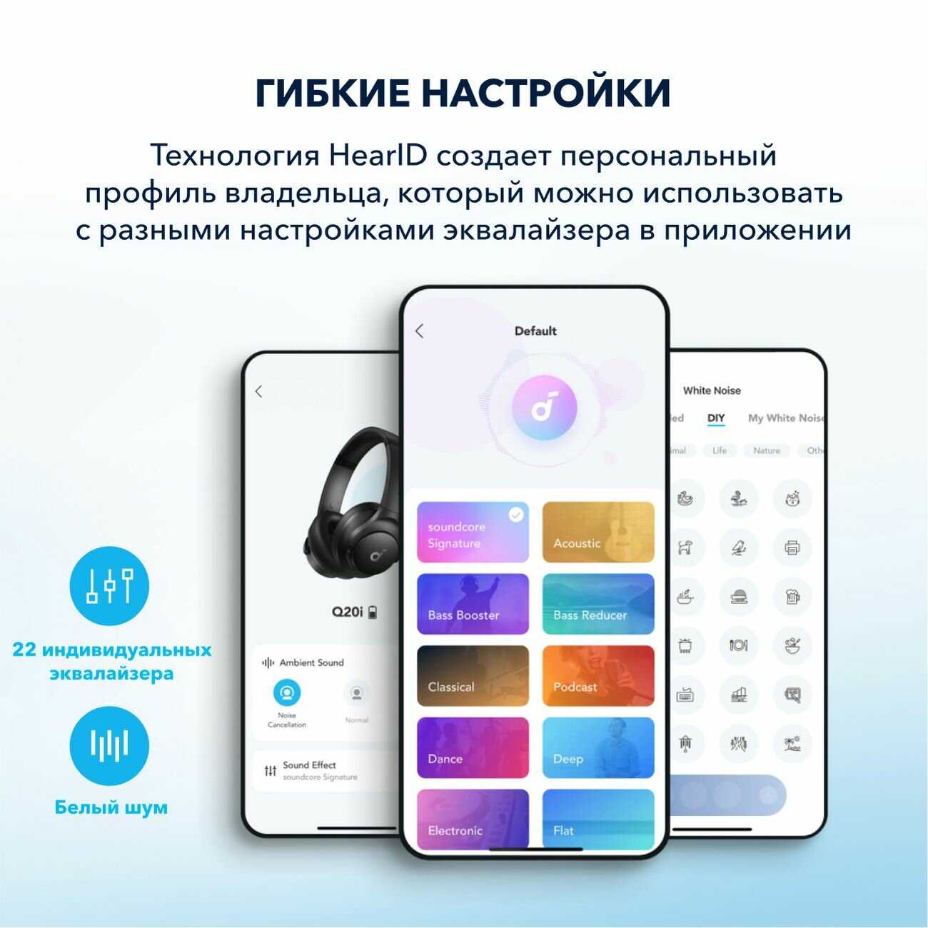 - Настраиваемый эквалайзер в приложении Soundcore:
