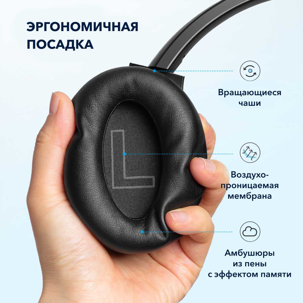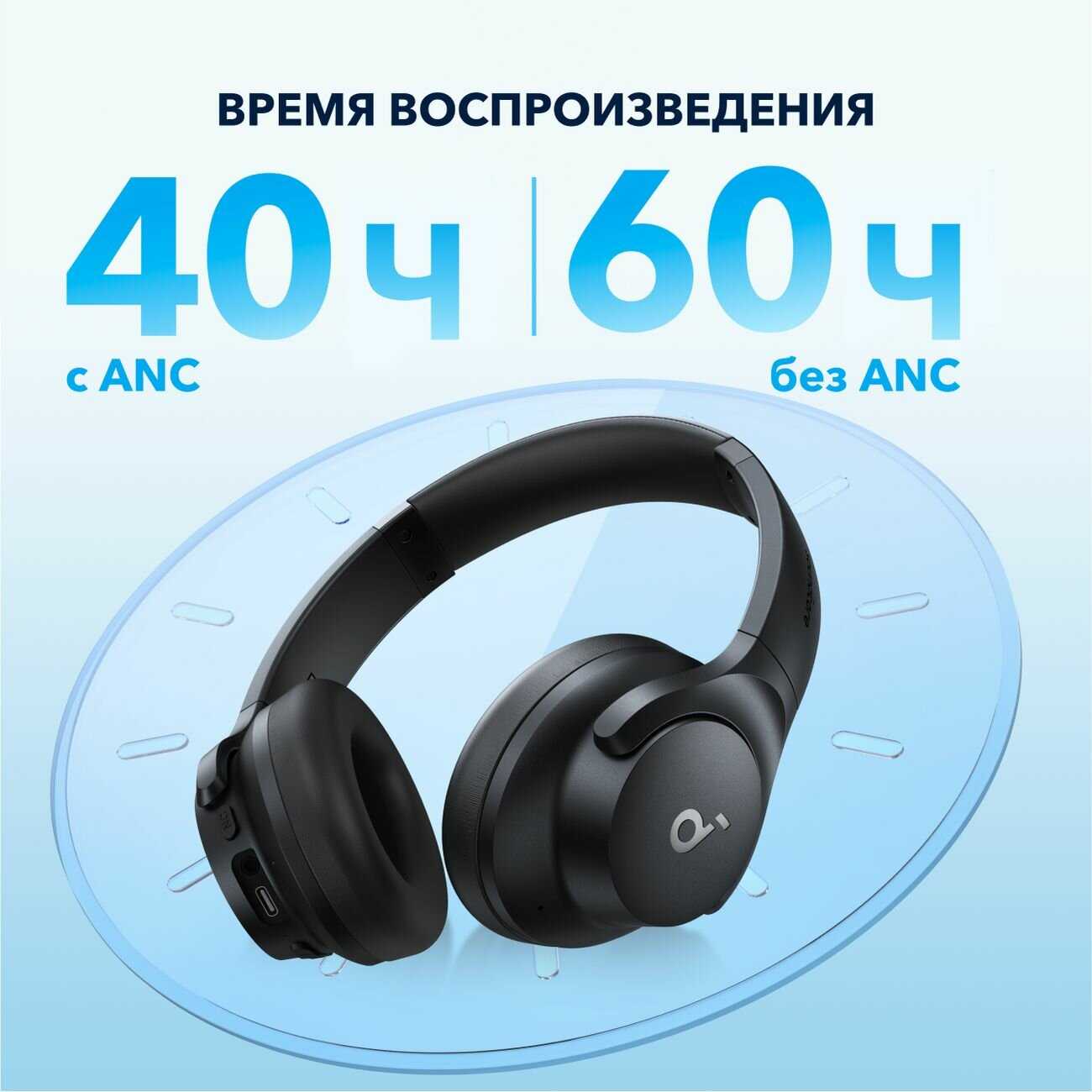 - До 40 часов работы с ANC и 60 часов без него позволяет использовать наушники несколько дней без подзарядки, идеально для поездок и пробежек.