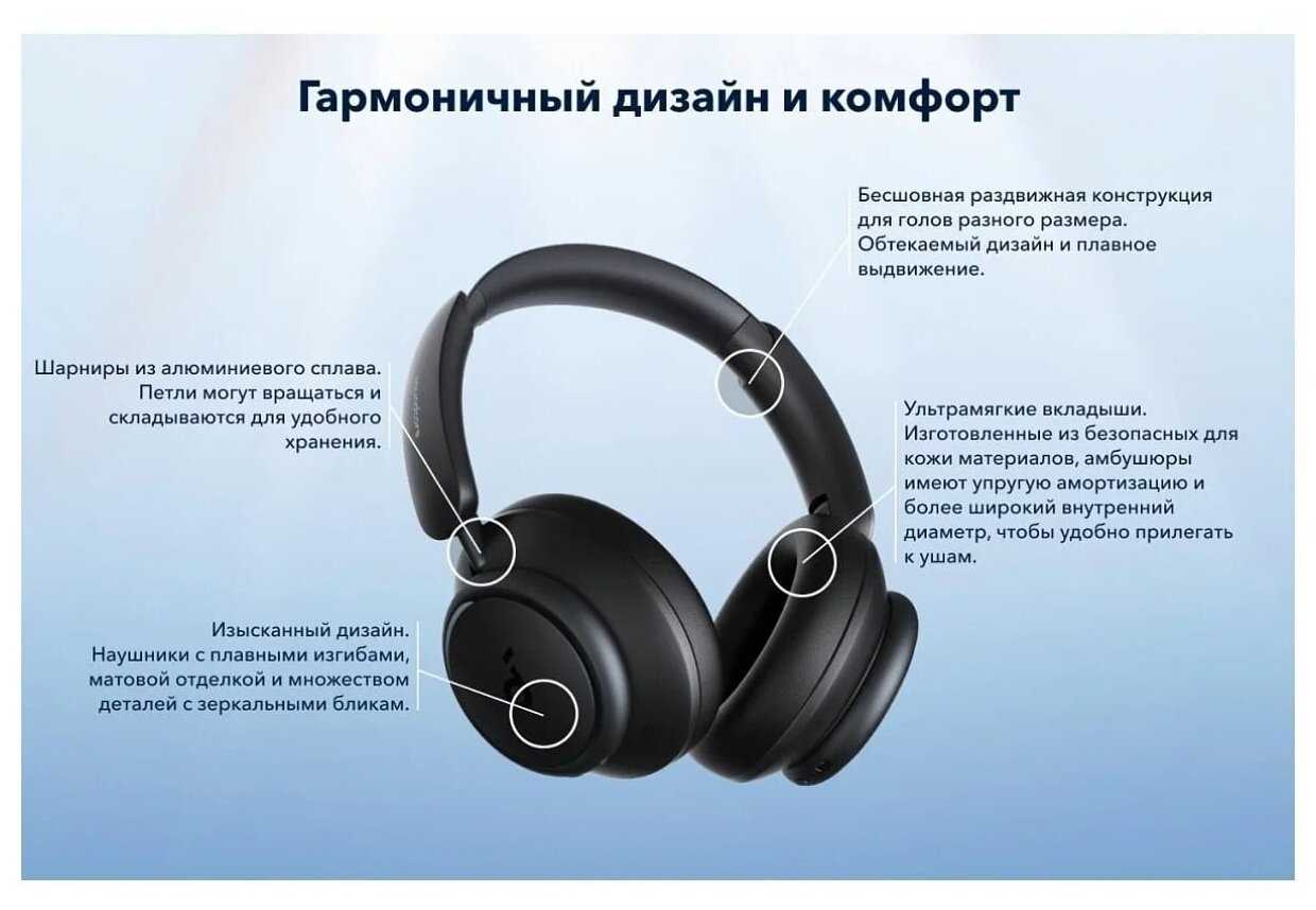 После тонкой настройки эквалайзера и активации LDAC наушники демонстрируют сбалансированный звук с проработанными басами (без излишней "бубнявости"), чёткими высокими частотами и широкой сценой. Они справляются с сложными жанрами (метал, оркестровая музыка), не сливая инструменты в "кашу". Однако для критичного прослушивания lossless-контента в проводном режиме может потребоваться внешний ЦАП, так как встроенный усилитель не всегда раскрывает потенциал 40-мм драйверов.