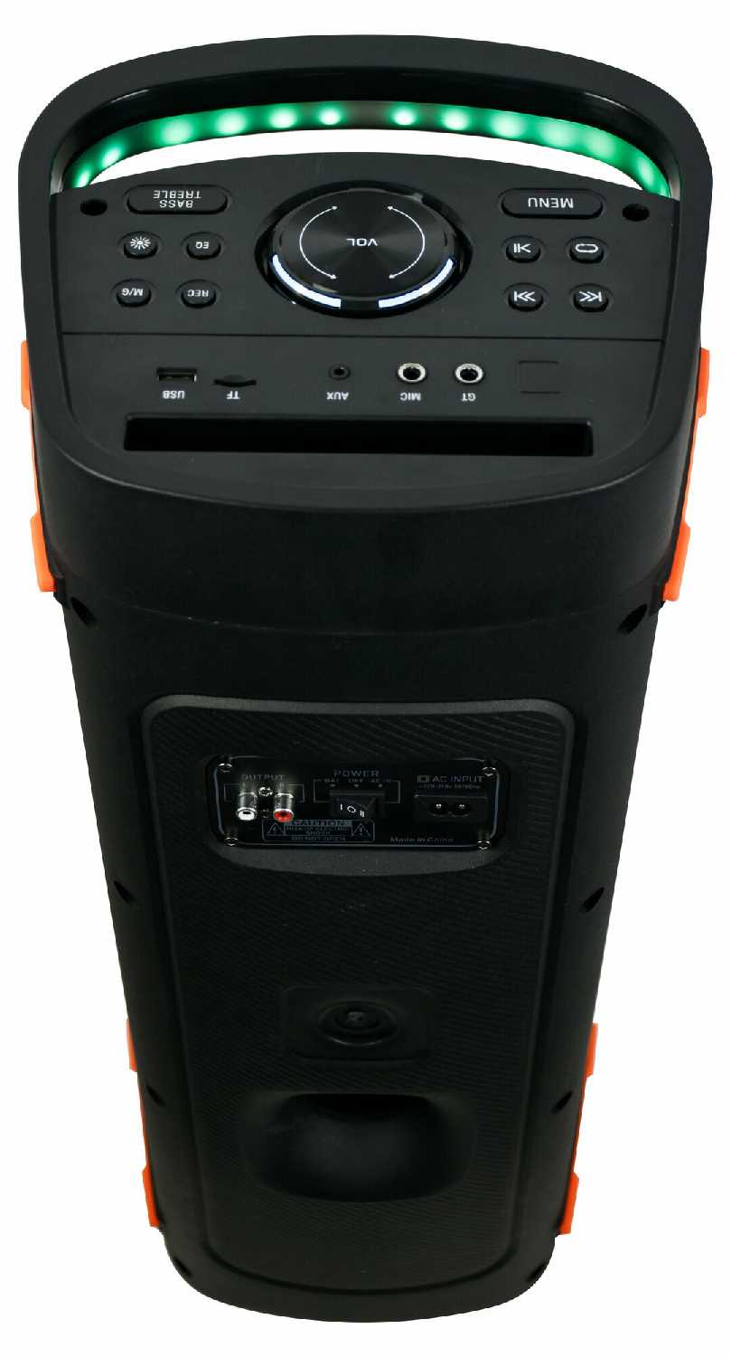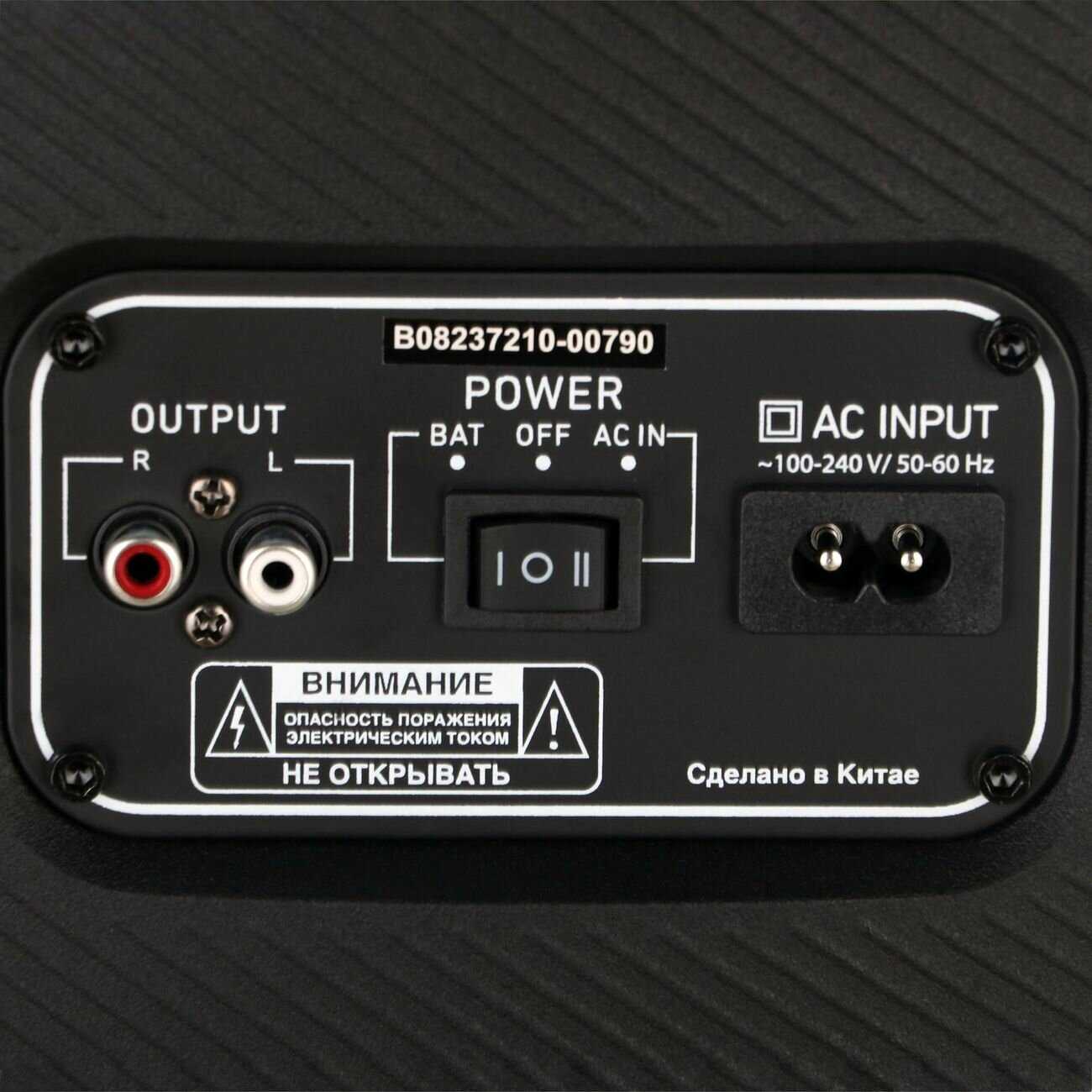 Порадовала развитая система взодов и выходов. Играет и с usb флешки, с микро sd, блютус, аукс. Подключив гитару и микрофон можно устроить мини караоке.