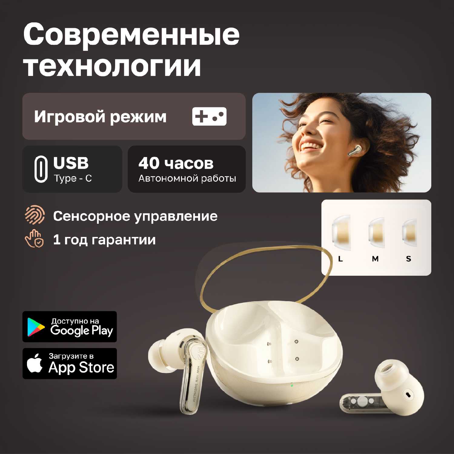 - Наушники не выпадают даже при активном движении благодаря компактной форме и отсутствию вакуумных амбушюр, что критично для пользователей с узкими слуховыми каналами.