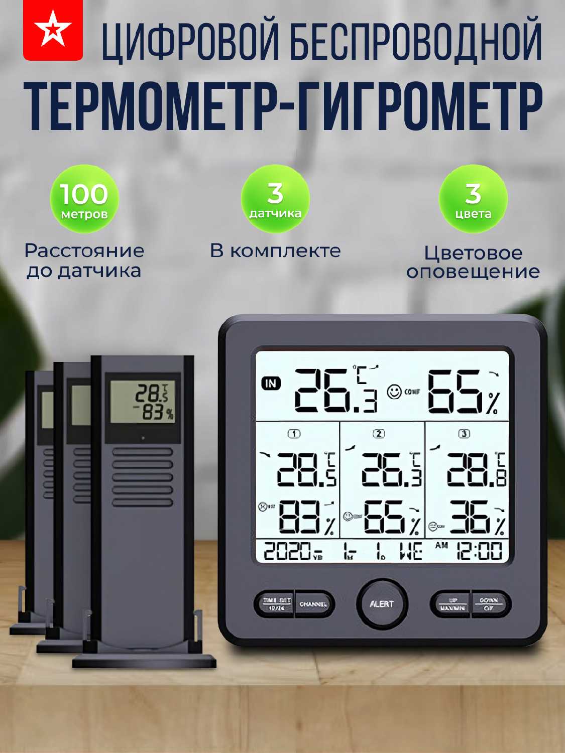 SOVANCI Термометр-гигрометр с 3-мя беспроводн?
