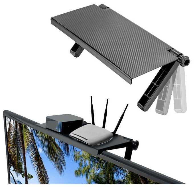 - + Получилась очень удобная полочка над телевизором для всяких мелочей типа пульт, сигареты, зажигалки, винтики. также не требует сверления отворачивания и т. д. просто поставил на ТВ и вче