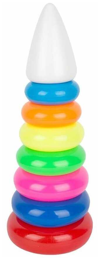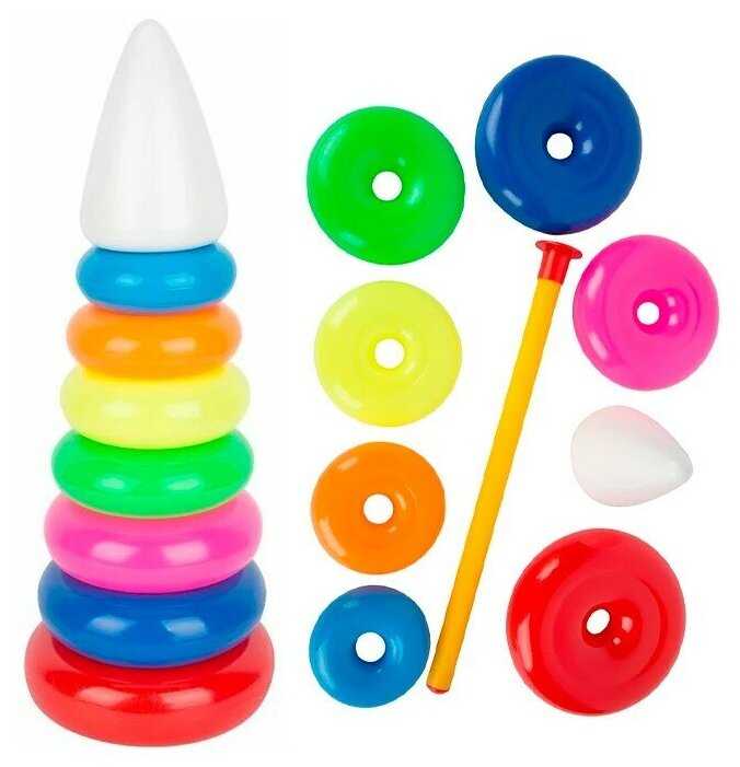 - + Довольно устойчивая пирамида, очень яркие цвета. Ребенку очень понравилась.