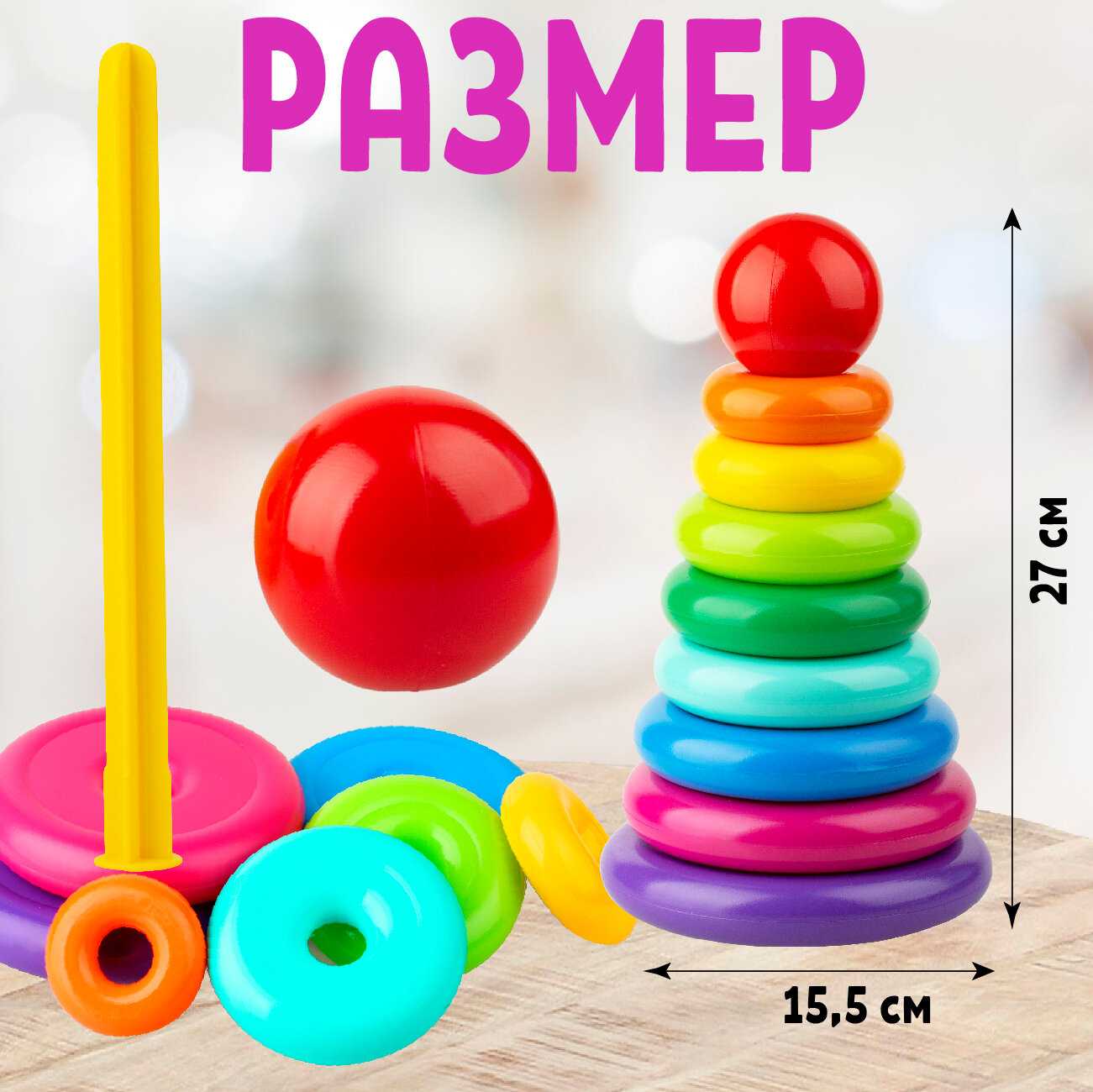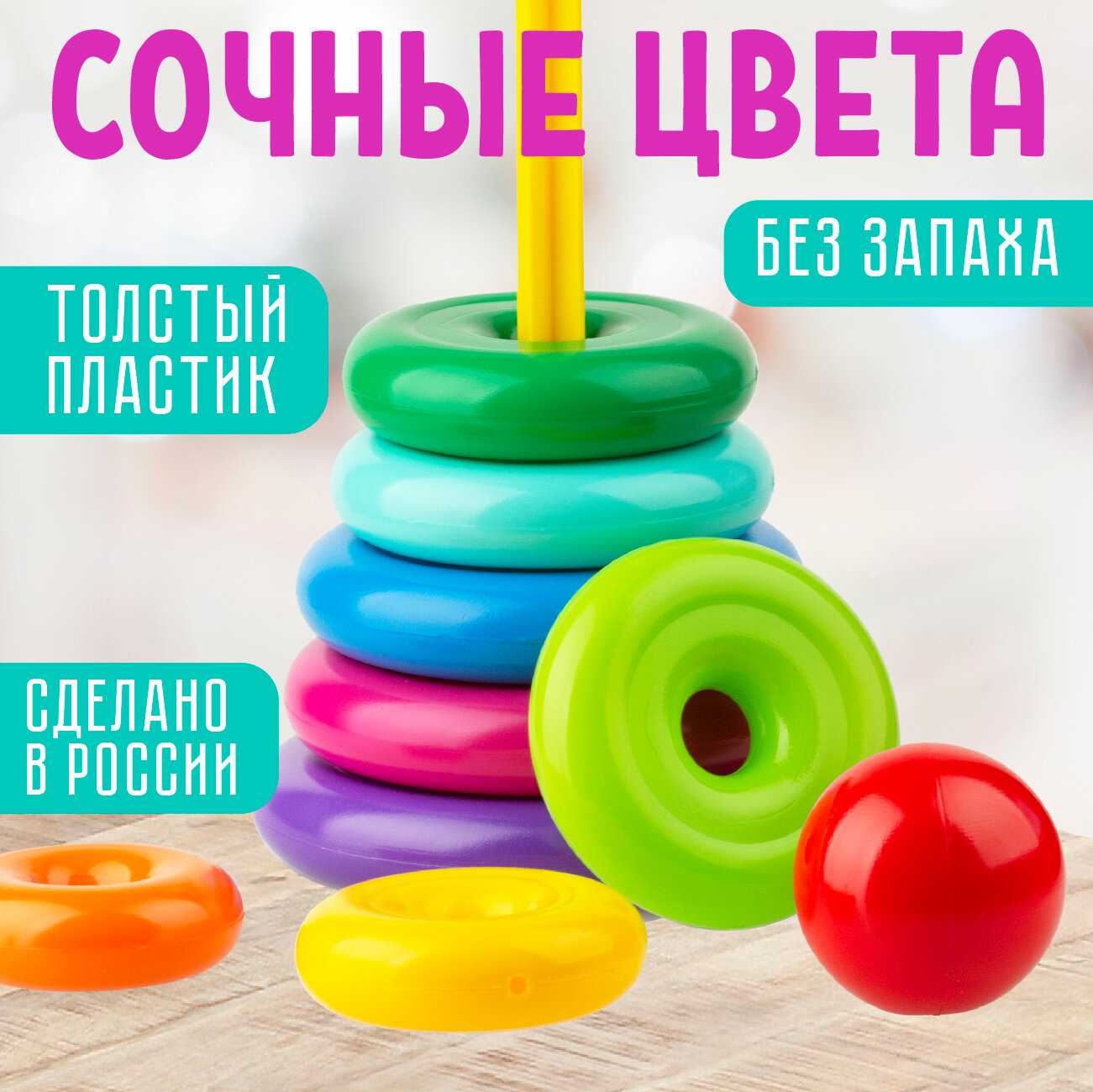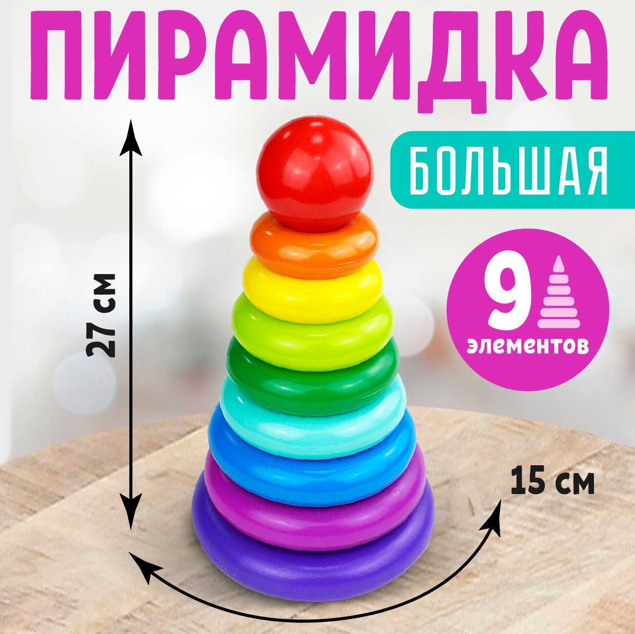 - + Хорошая пирамидка ,довольно большая,что порадовало,думала будет меньше,единственное,что шарик наверху трудно снимать ребенку,так как пластик мягкий ,можно сделать отверстие чуть больше