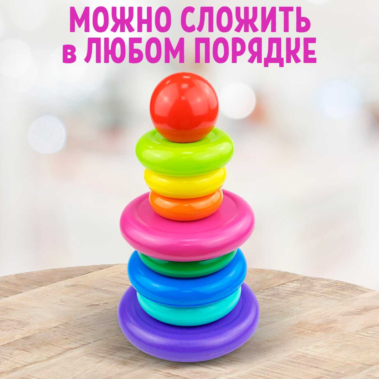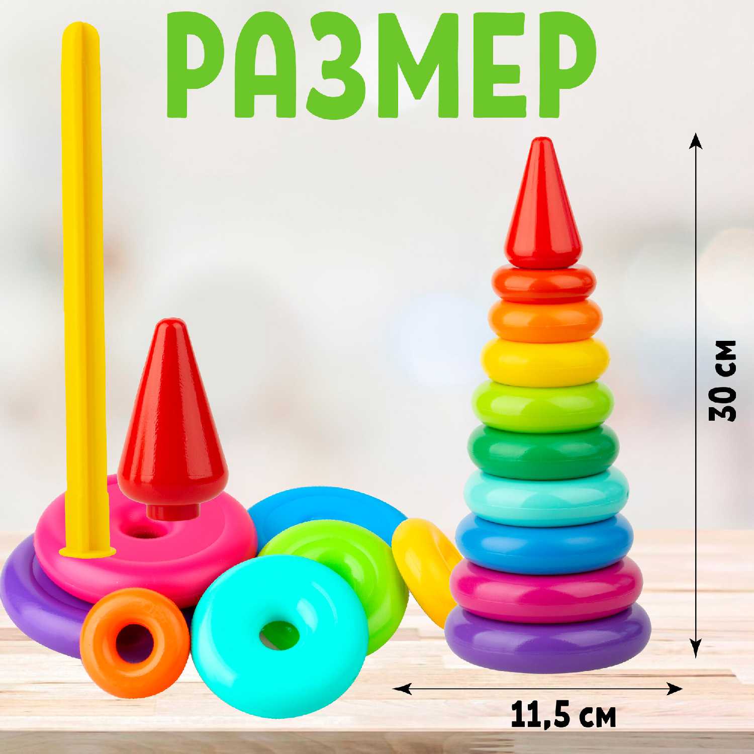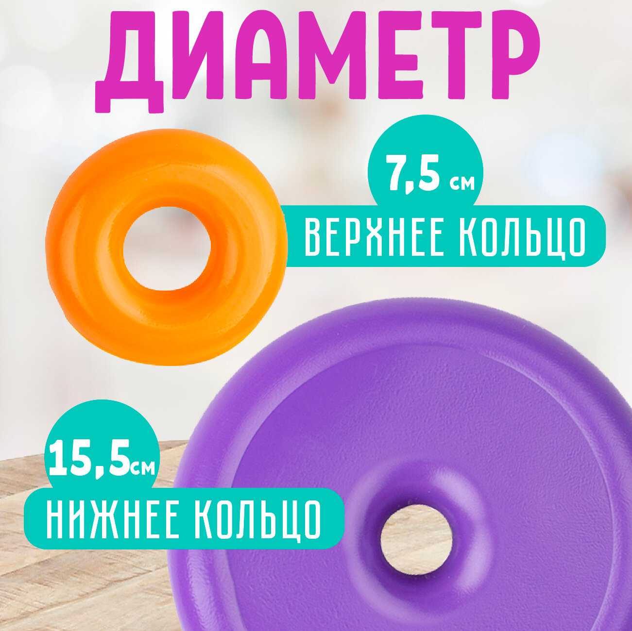 - + Хорошая пирамидка ,довольно большая,что порадовало,думала будет меньше,единственное,что шарик наверху трудно снимать ребенку,так как пластик мягкий ,можно сделать отверстие чуть больше