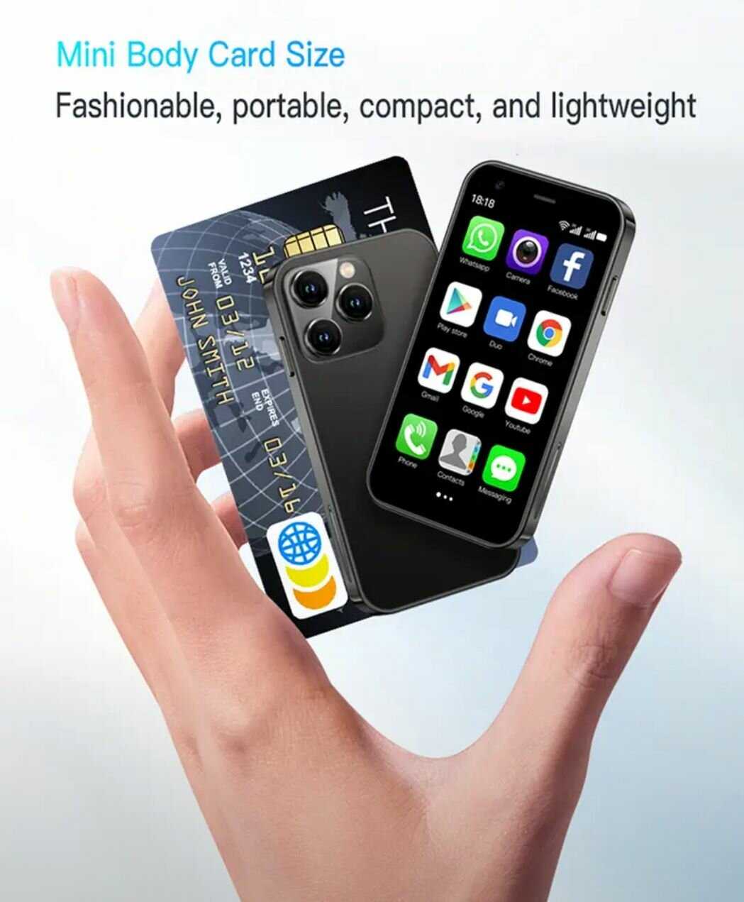 Телефон имеет исключительно малые габариты, что неоднократно подчеркивается пользователями. Многие отмечают, что его размер чуть меньше стандартной банковской карты, и он легко помещается в ладони. Такой компактный форм-фактор делает устройство удобным для ношения в кармане и комфортным для использования в качестве второго телефона или устройства для звонков. -
