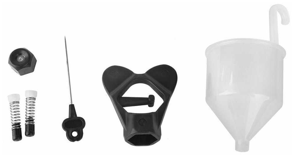 Комплектация : | Краскораспылитель с бачком, сопло, игла для чистки сопла, клапан (2шт). ключ, измеритель вязкости, инструкция по эксплуатации |