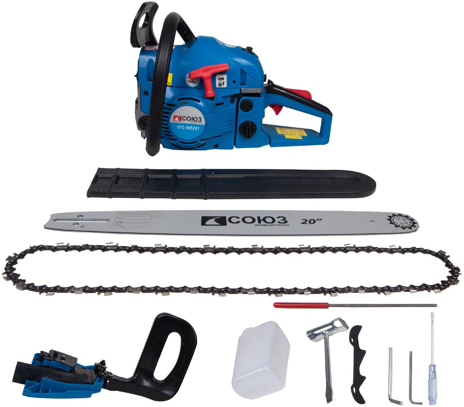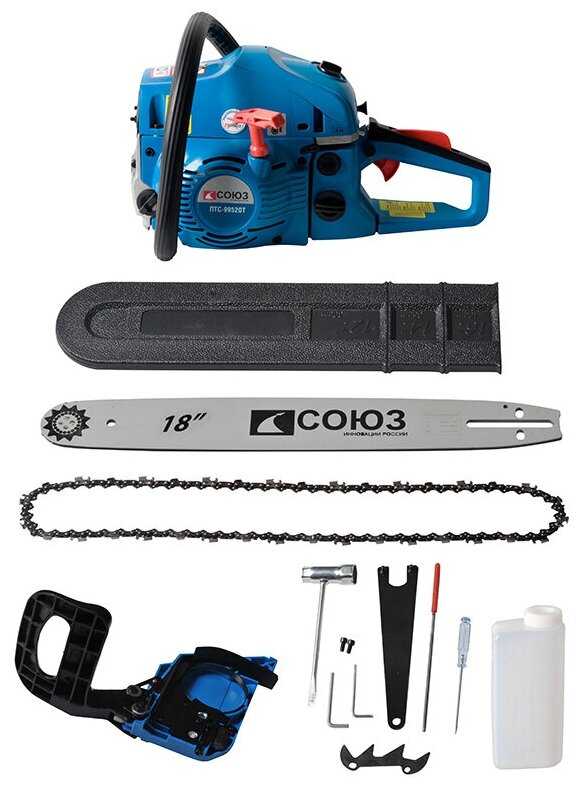 Комплект поставки : | Пила бензиновая, Пильная цепь, Пильная шина, Пластиковый защитный кожух шины, Отвертка, Круглый напильник для заточки цепи, Мерный стакан для приготовления топливной смеси, Комбинированный ключ, Шестигранные ключи (2 шт:3 мм, 4 мм), Зубчатый упор с шурупами, Инструкция по эксплуатации |