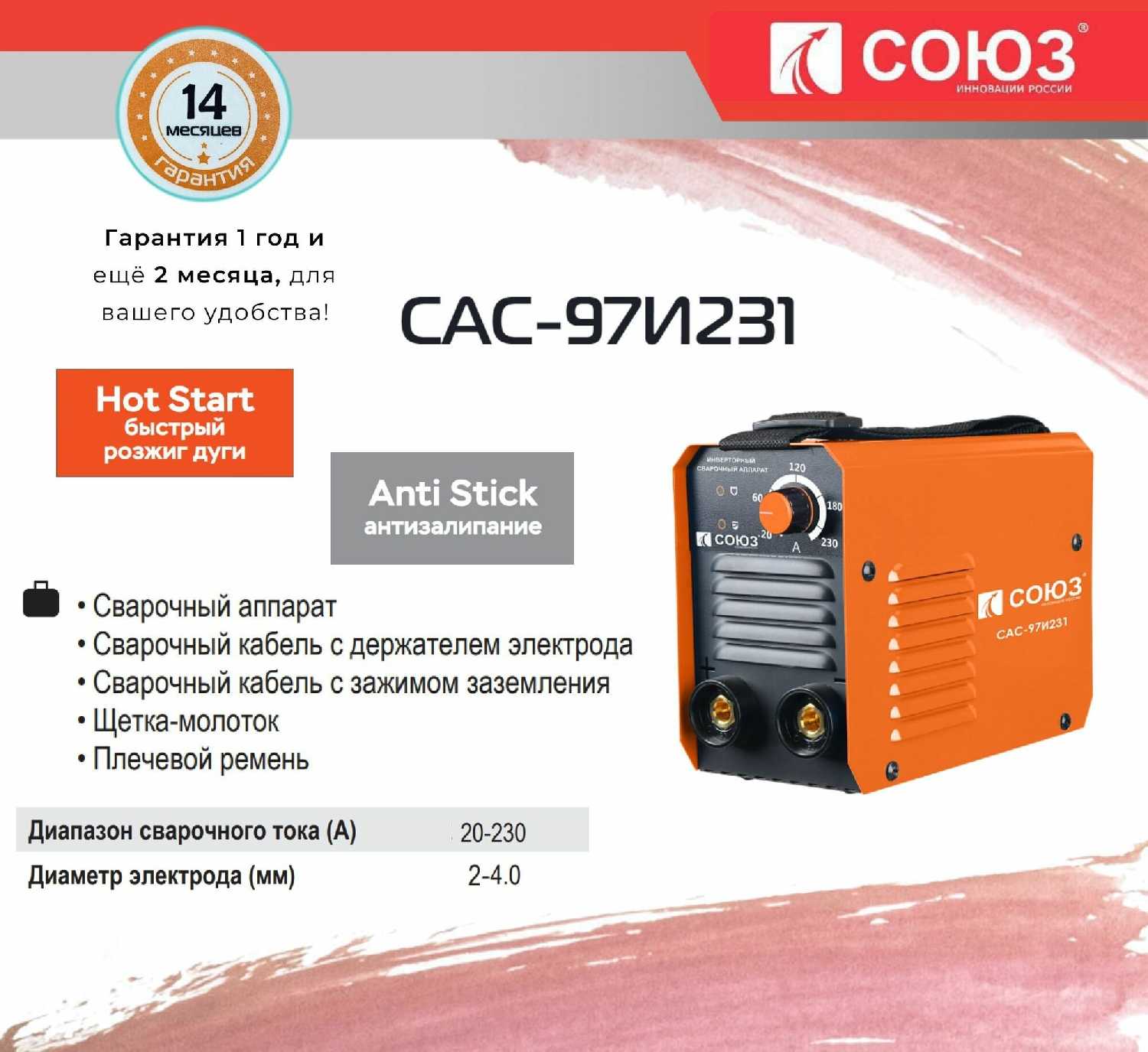 Отзывы о Сварочный инвертор СОЮЗ САС-97И231