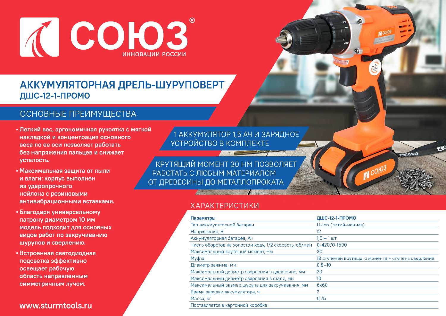 Отзывы о Аккумуляторный шуруповерт СОЮЗ ДШС-12-1-ПРОМО