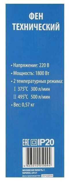 | 袛芯锌芯谢薪懈褌械谢褜薪邪褟 懈薪褎芯褉屑邪褑懈褟 : | 2 褉械卸懈屑邪 褉邪斜芯褌褘 - 375 掳C 300 谢/屑懈薪, 495 掳C 500 谢/屑懈薪, 写谢懈薪邪 泻邪斜械谢褟: 1.8 屑 |