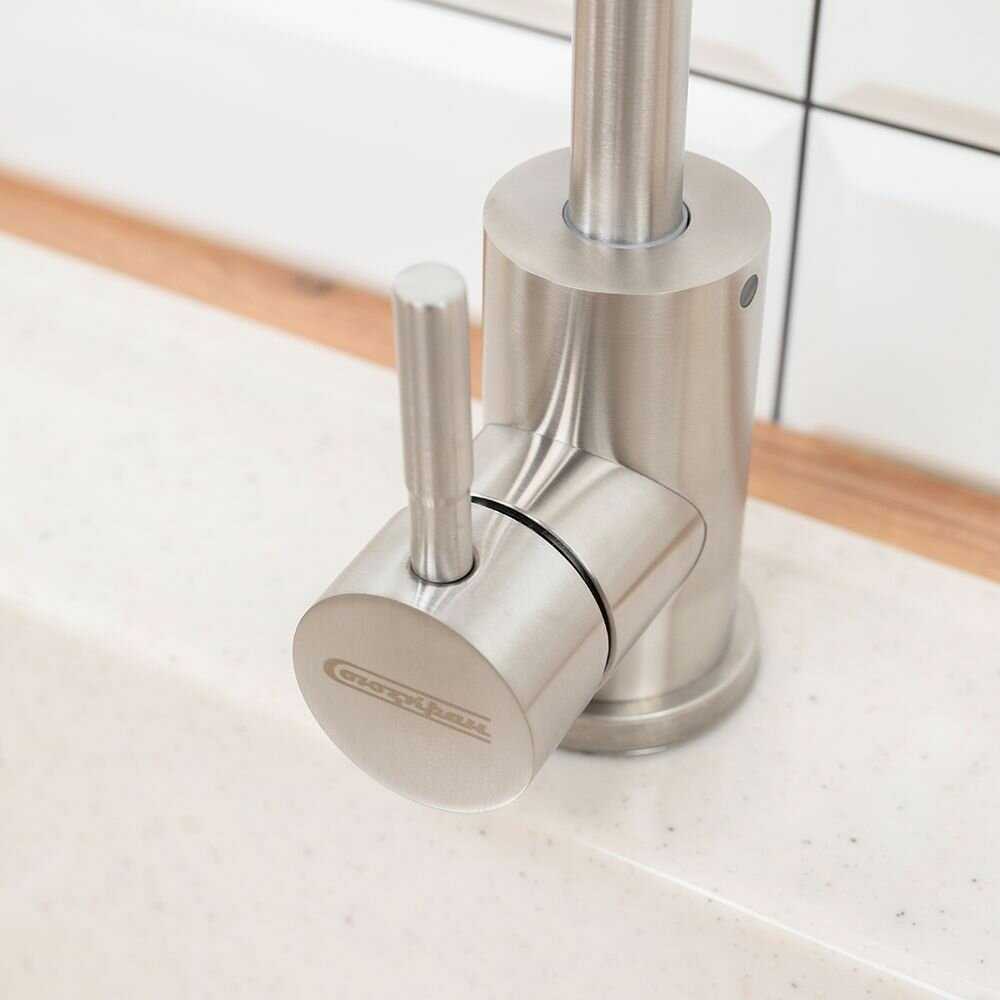- + Удобный большой радиальный гусак с лейкой на шленге. Мыть раковину от жира и остатков пищи одно удовольствие.