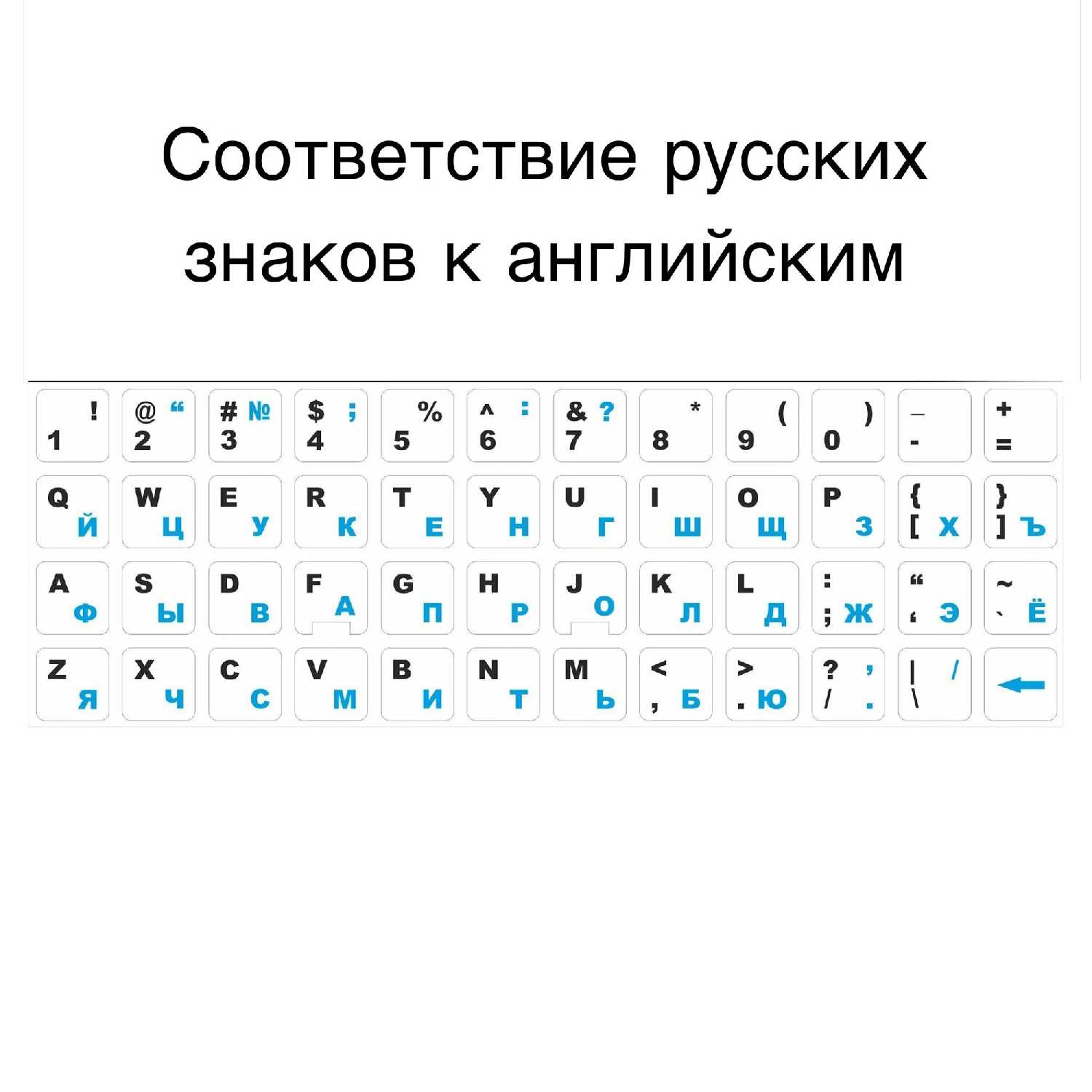 - - Русский алфавит отдельно на наклейке, кнопки круглые, а наклейки квадратные.