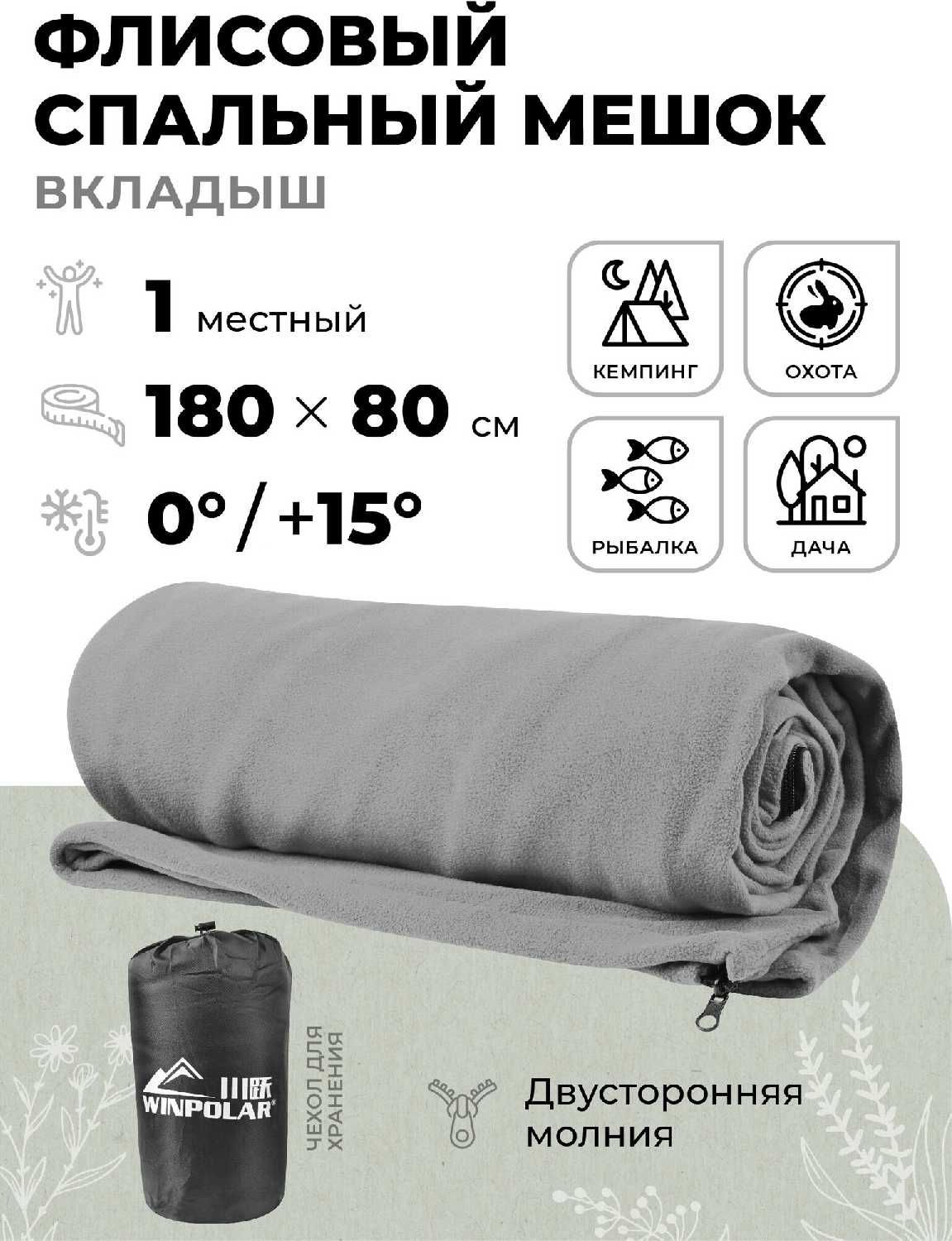 ПРОФИ Флисовый спальный мешок-вкладыш (180х80 см)