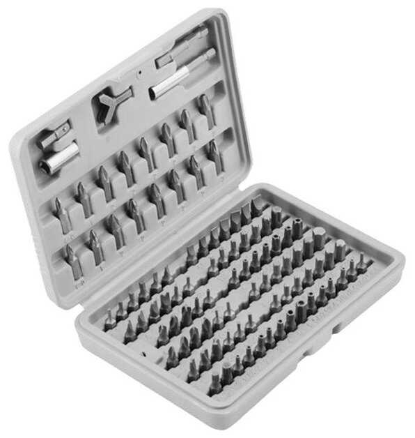 Дополнительная информация : | материал: хромованадиевая сталь, пластиковый кейс - 1 шт, Биты 25 мм:, Philips: РН0 РН1 РН2 (5 шт) РН3, Pozidrive: PZ0 PZ1 PZ2 (5 шт) PZ3, Slotted: SL3 SL4 SL45 SL5 SL55 SL6 SL65 SL7 SL8, Torx: T8 T10 T15 T20 T25 T27 T30 T40 T45, Torx Tamper: TT8 TT10 TT15 TT20 TT25 TT27 TT30 TT40 TT45, Hex: H15 H2 H25 H3 H4 H5 H55 H6 H8 H1/16 H5/64 H3/32 H7/64 H1/8 H9/64 H5/32 H3/16 H7/32 H1/4, Hex Securuty: HS2 HS25 HS3 HS4 HS5 HS6 HS5/32 HS9/64 HS1/8 HS7/64 HS3/32 HS5/64, Square: S0 S1 S2 S3, Spline: M5 M6 M8, Spanner: 4 6 8 10, Torq/set: 6 8 10, Tri-wing: 1 2 3 4, One-wa: 1 2 3, Адаптеры для торцевых головок 1/4" - 2 шт: 25 мм и 50 мм - 95 шт, Переходник для бит - 1 шт, Битодержатель - 1 шт, Ключ для бит - 1 шт |