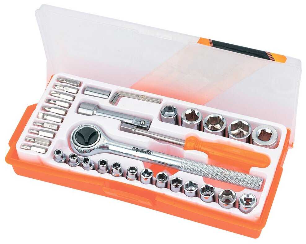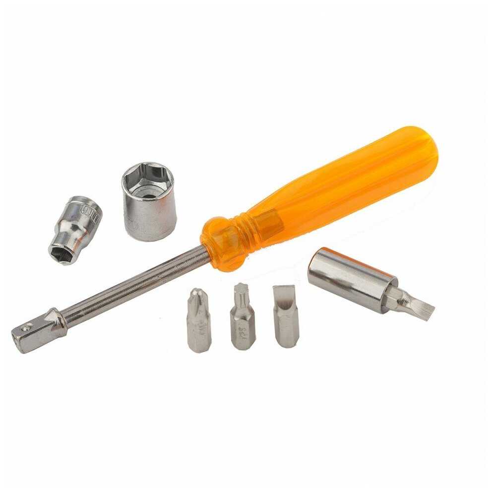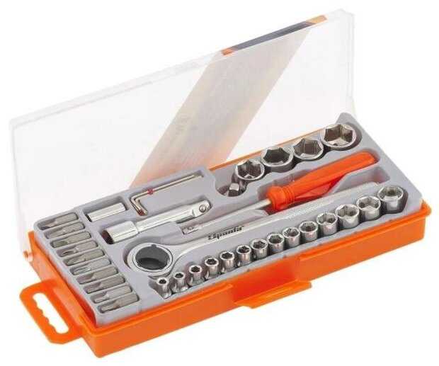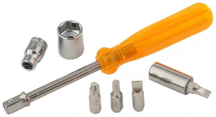 Аксессуары в комплекте : | бита-адаптер для торцевых головок, держатель для бит, удлинитель для бит, удлинитель для головок |