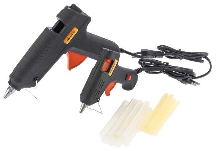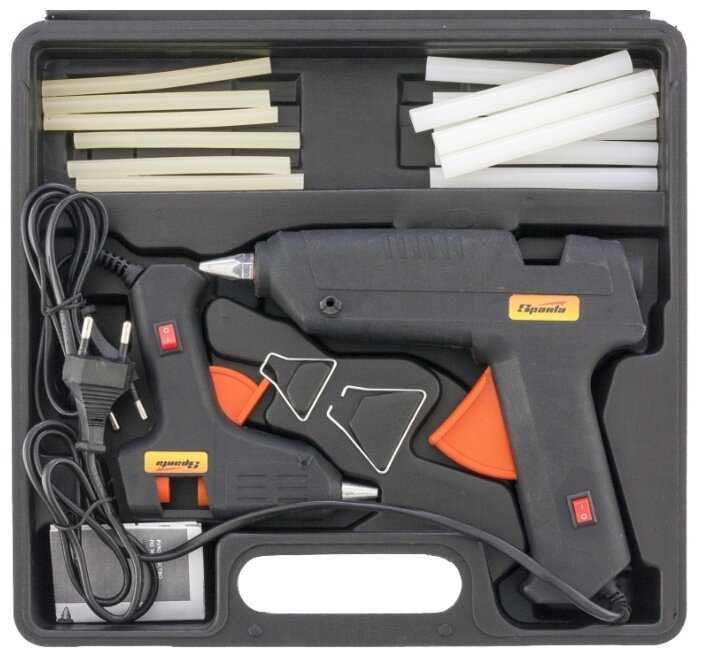 - + Комплект находится в компактном пластиковом кейсе, где удобно хранить эти клеевые пистолеты. Их два - большой и маленький, что тоже учень удобно. Можно использовать для различных домашних задач - мелкий ремон, рукоделие и.т.д. На ручках пистолетов есть кнопка выключения и в наконечнеках стоит приспособа, которая...