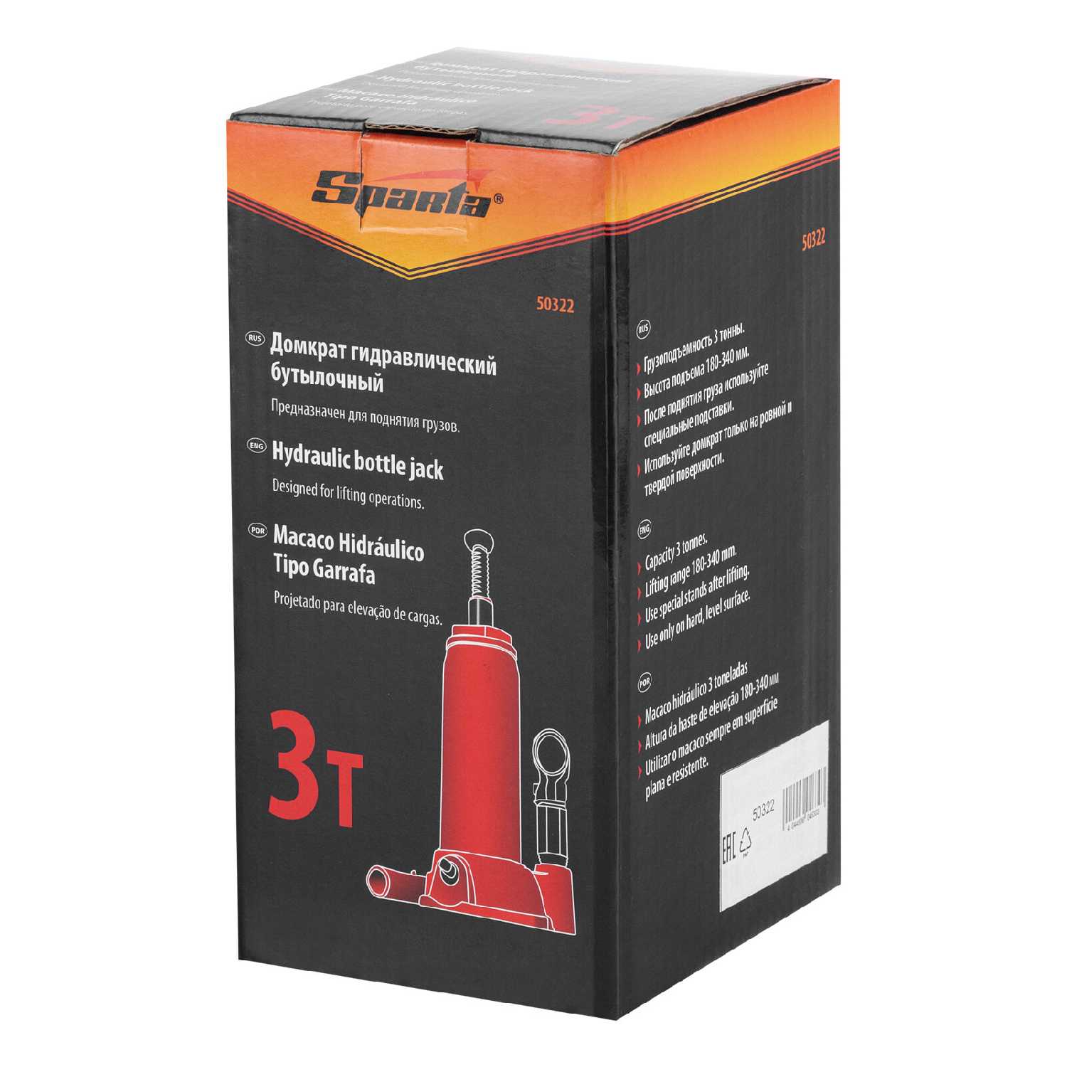 Характеристи Sparta Домкрат бутылочный гидравлический (50322)