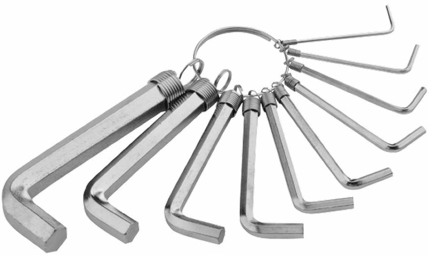 - + легко снимается с пружин, большой размерный ряд, для мебели, для лобзика очень нужные ключи