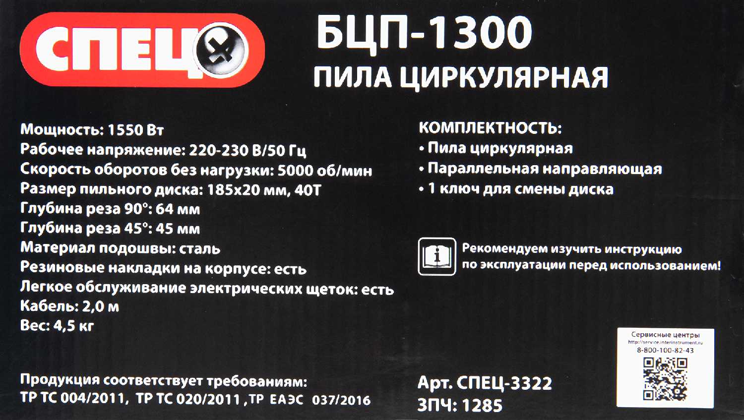 Отзывы о Циркулярная пила Спец БЦП-1300